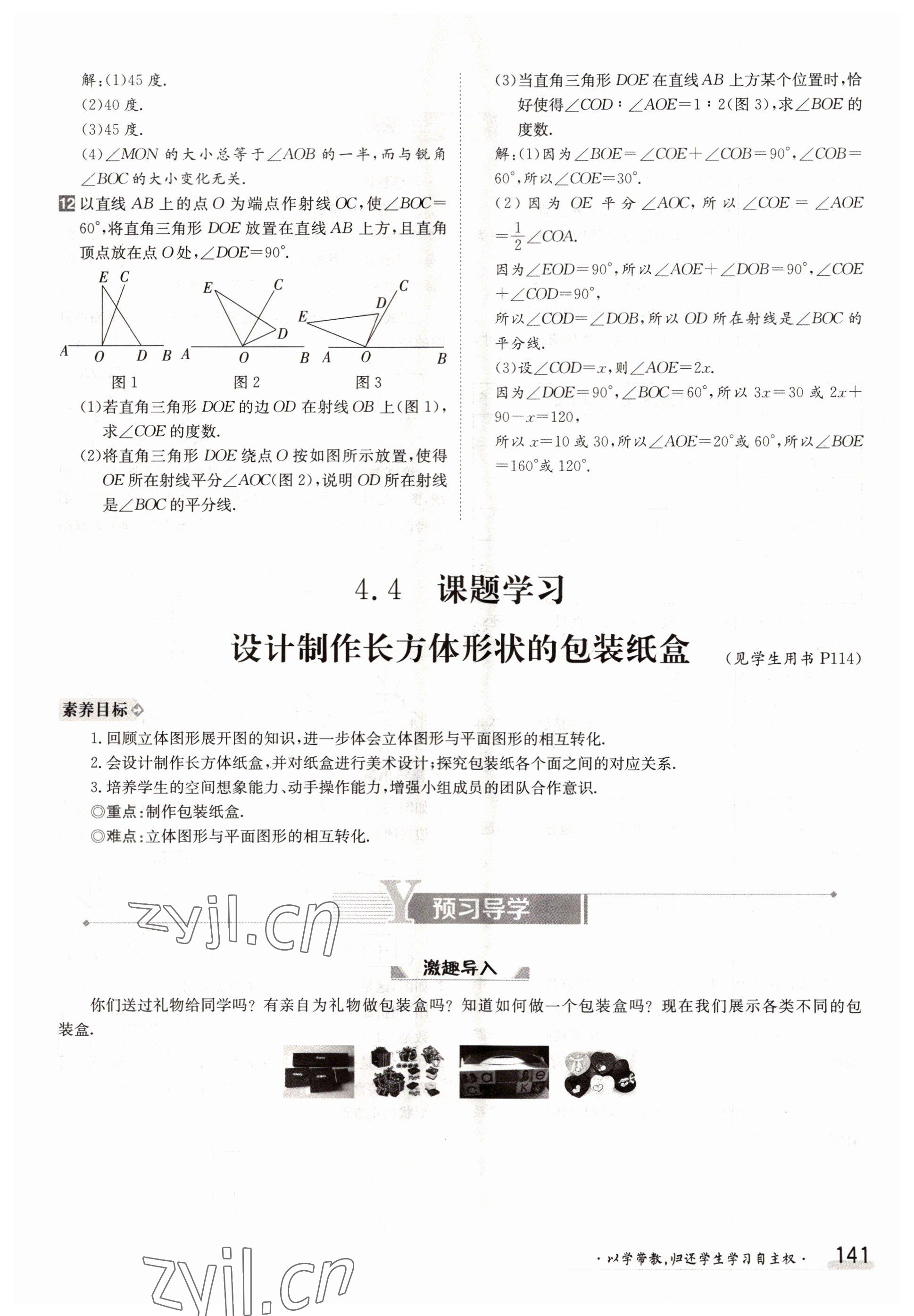 2022年金太阳导学案七年级数学上册人教版参考答案第141页
