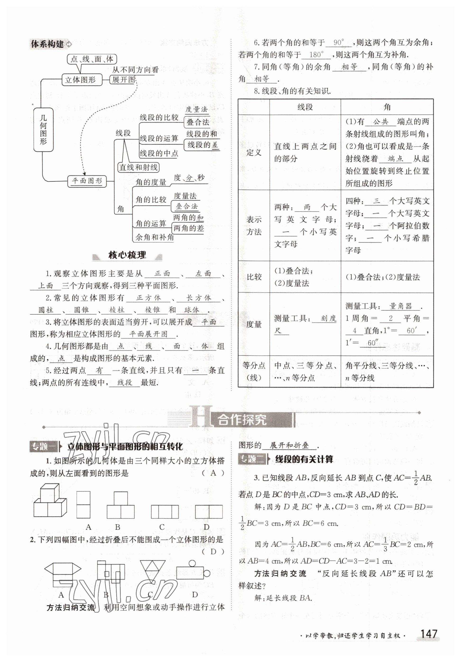 2022年金太阳导学案七年级数学上册人教版参考答案第147页