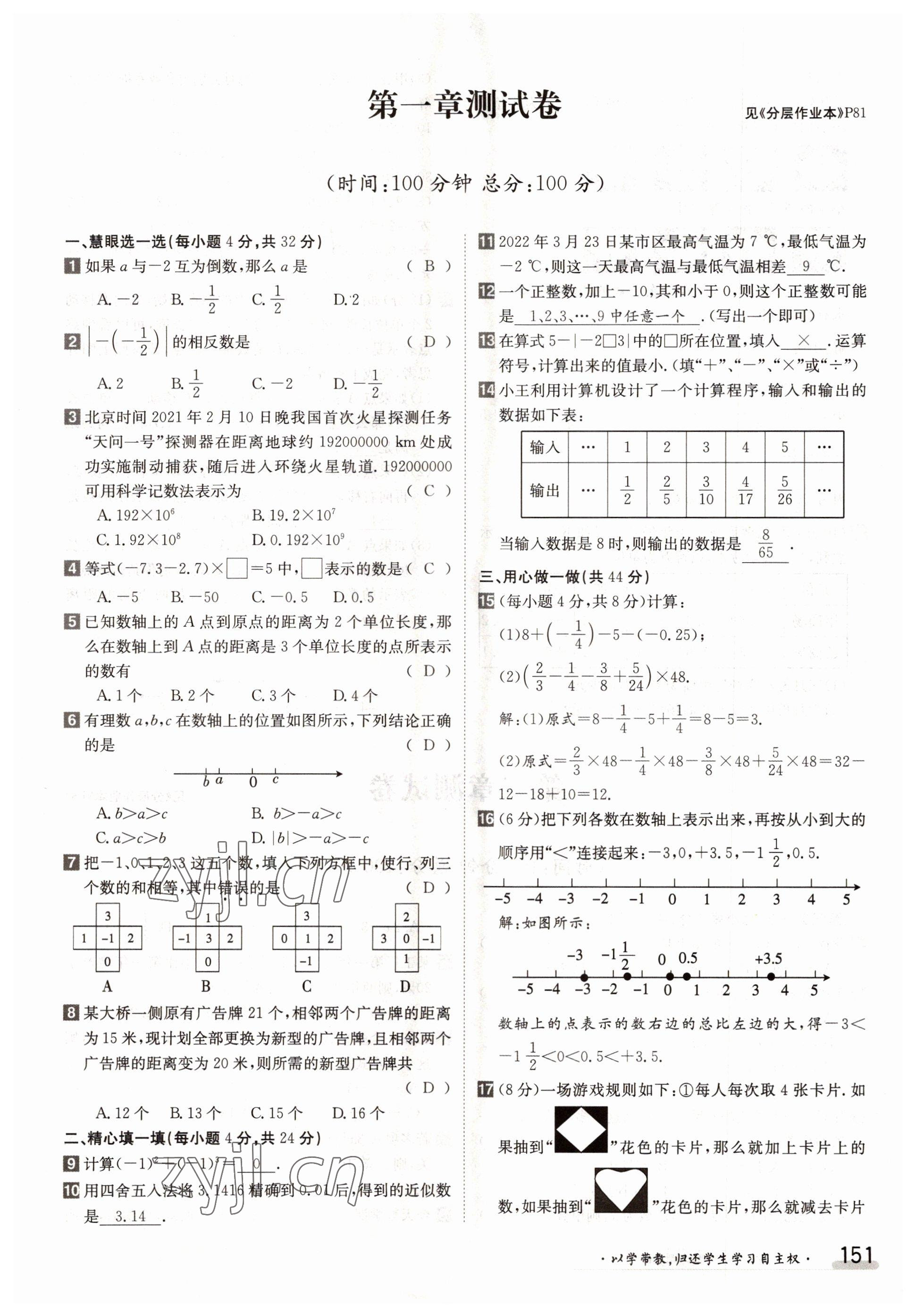 2022年金太阳导学案七年级数学上册人教版参考答案第151页