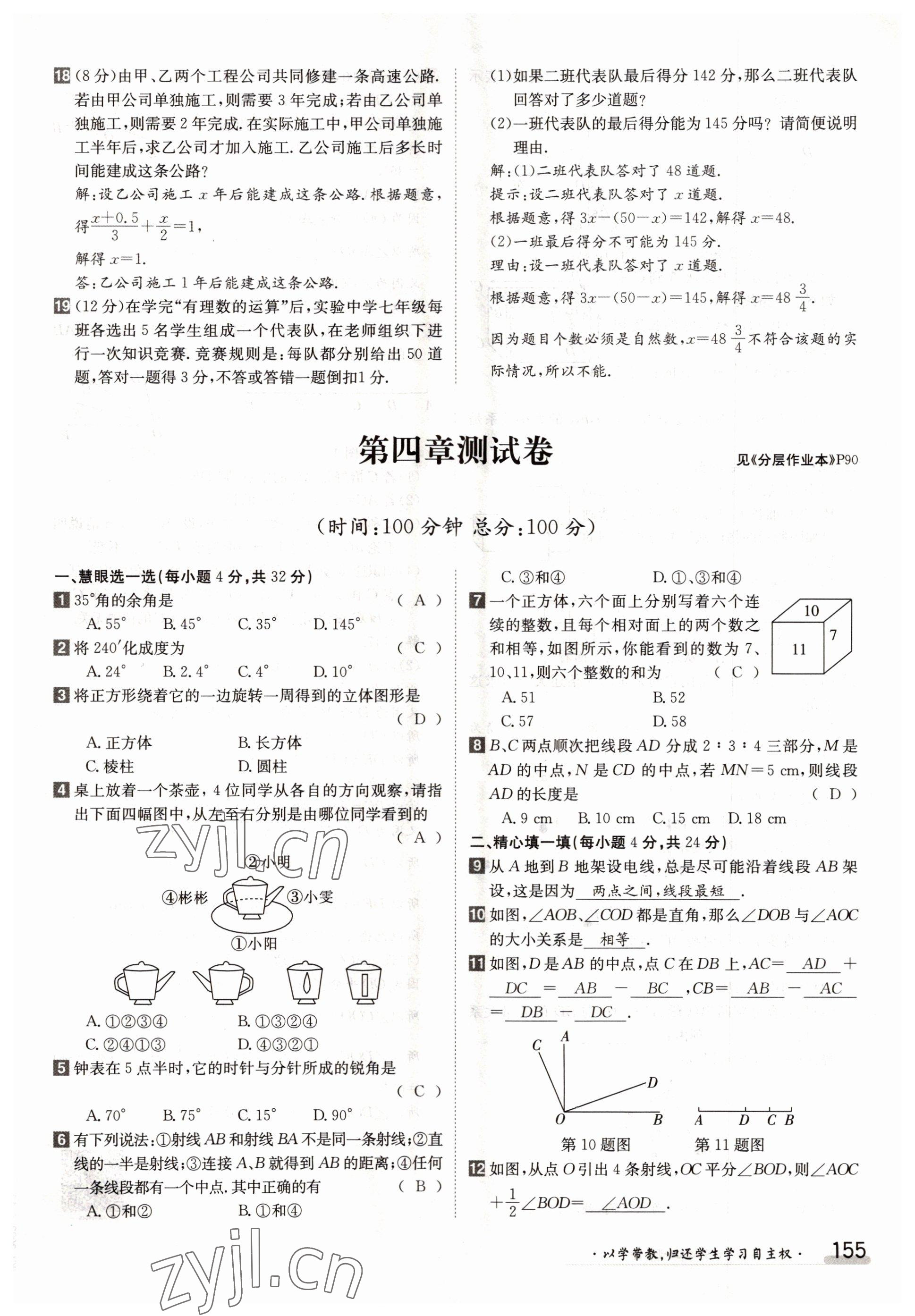 2022年金太阳导学案七年级数学上册人教版参考答案第155页