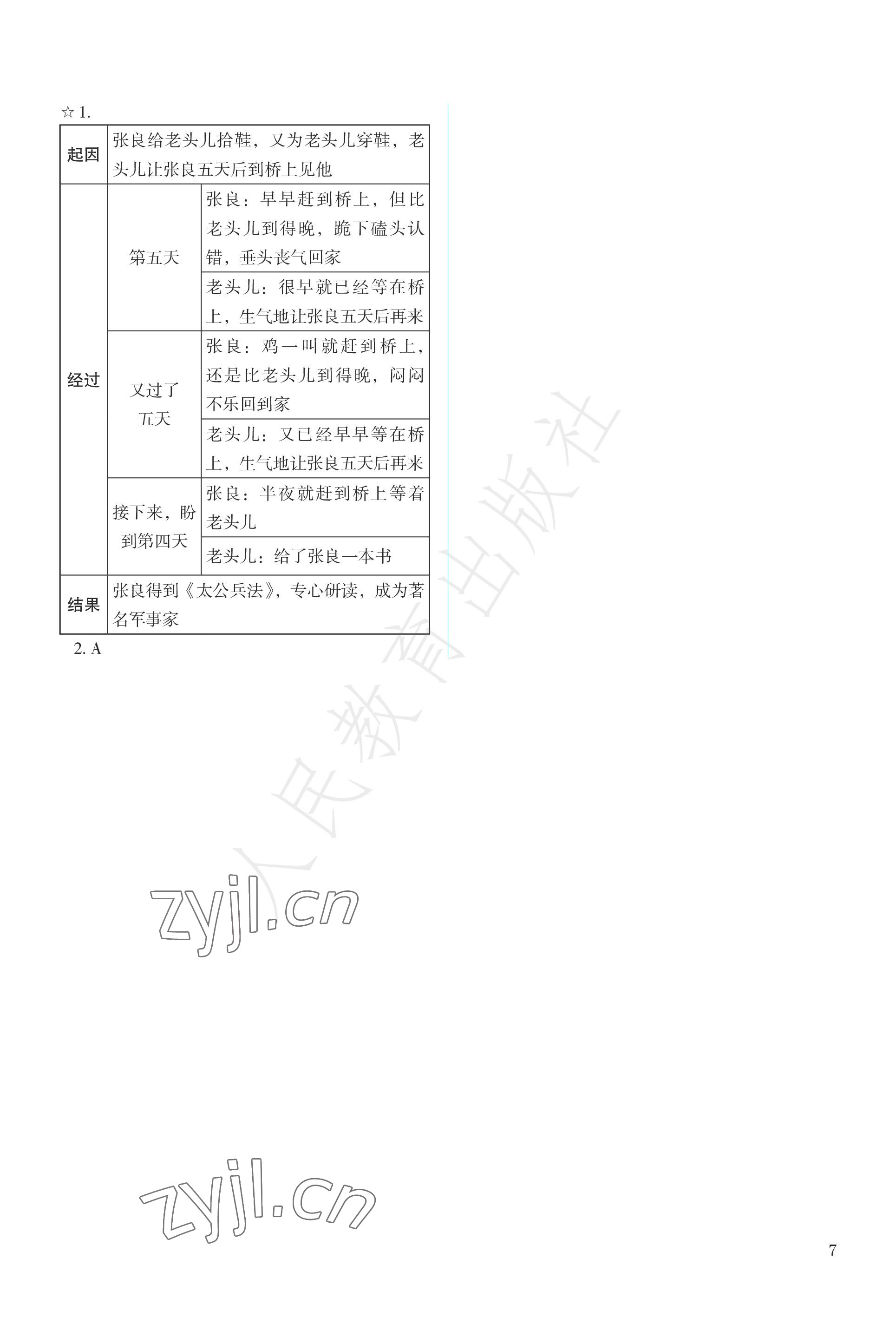 2022年人教金学典同步解析与测评四年级语文上册人教版参考答案第7页