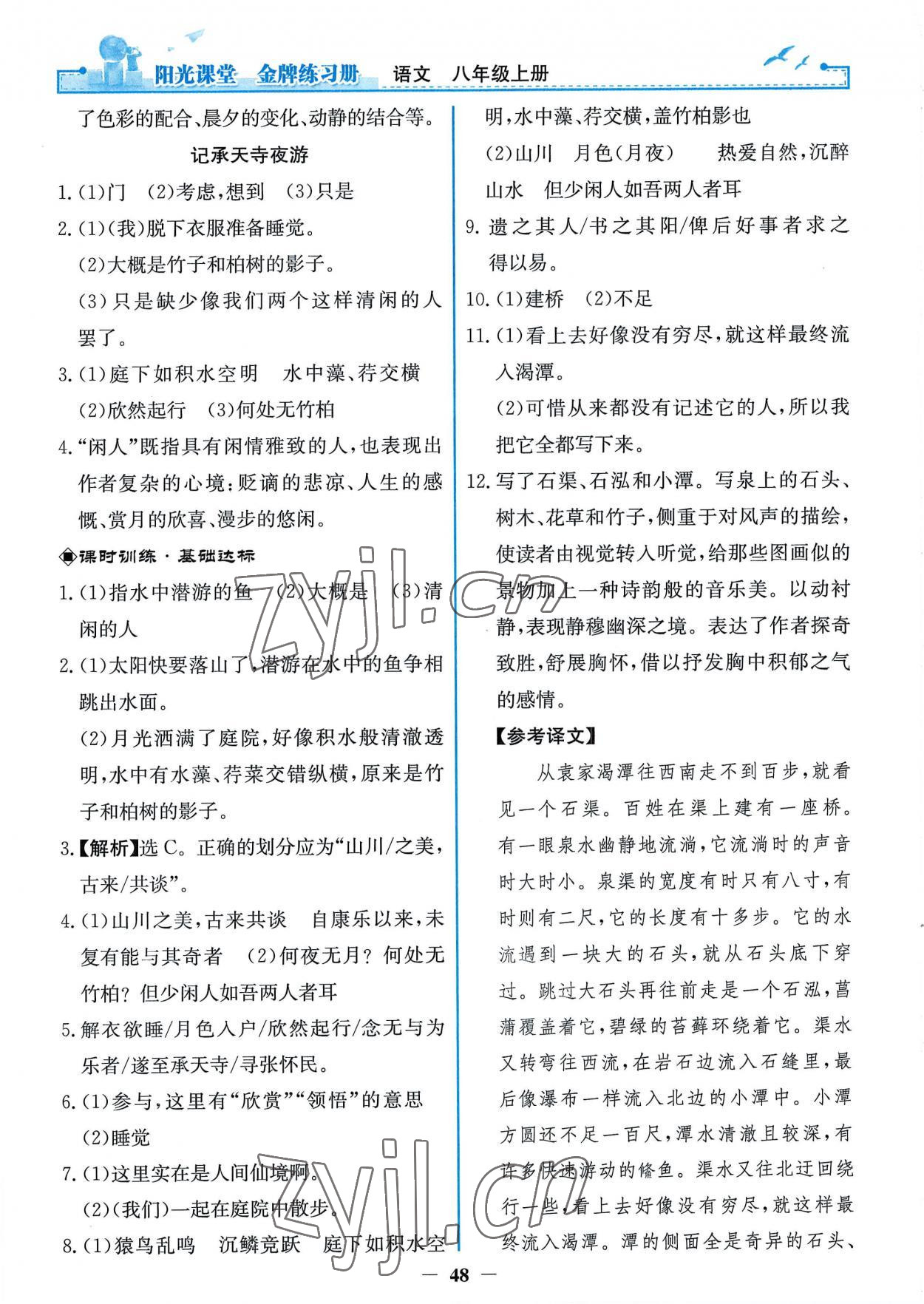 2022年阳光课堂金牌练习册八年级语文上册人教版第12页