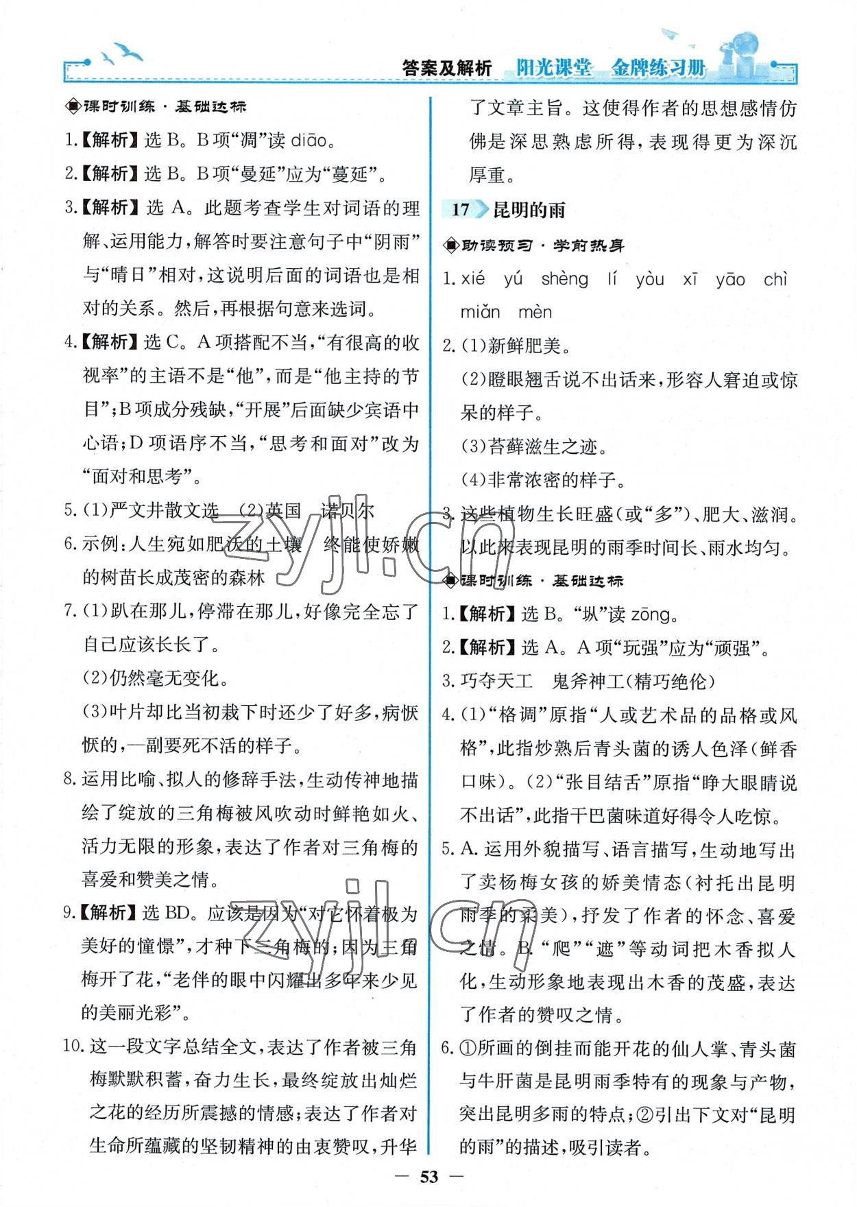 2022年阳光课堂金牌练习册八年级语文上册人教版第17页