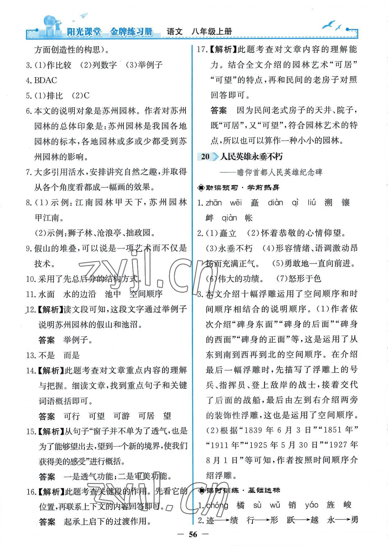 2022年阳光课堂金牌练习册八年级语文上册人教版第20页