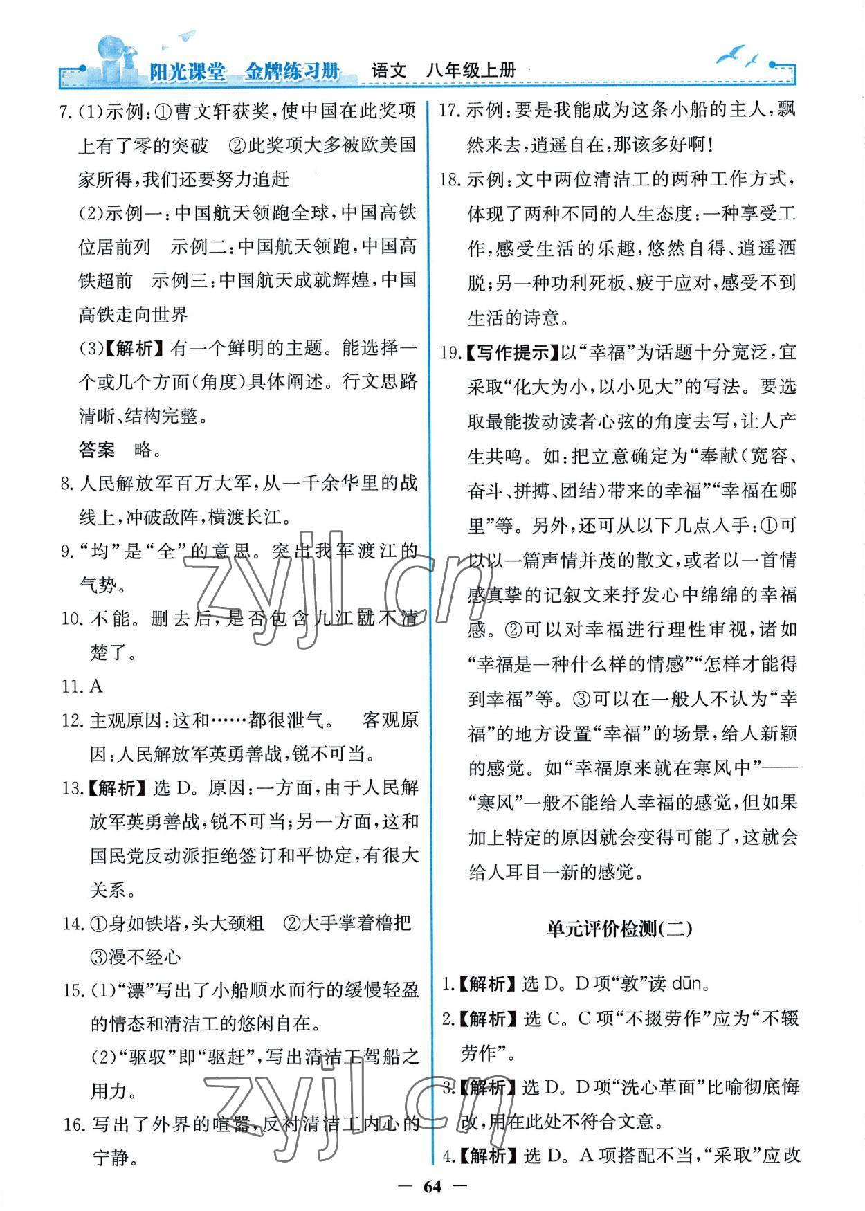 2022年阳光课堂金牌练习册八年级语文上册人教版第28页