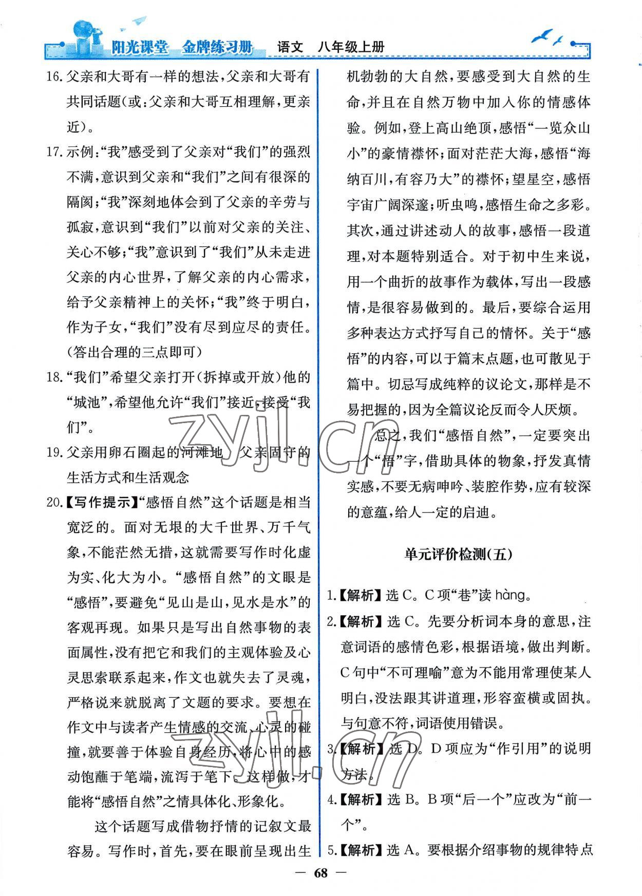 2022年阳光课堂金牌练习册八年级语文上册人教版第32页