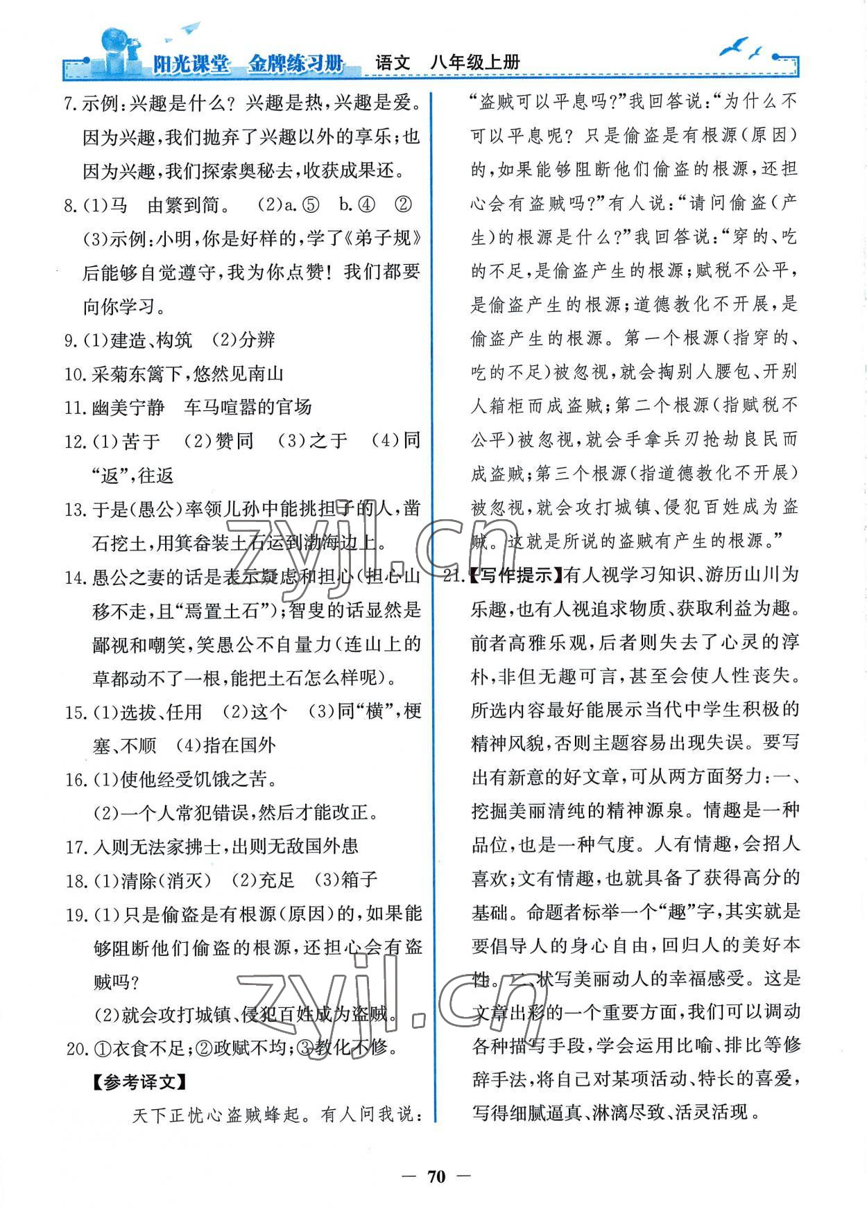 2022年阳光课堂金牌练习册八年级语文上册人教版第34页