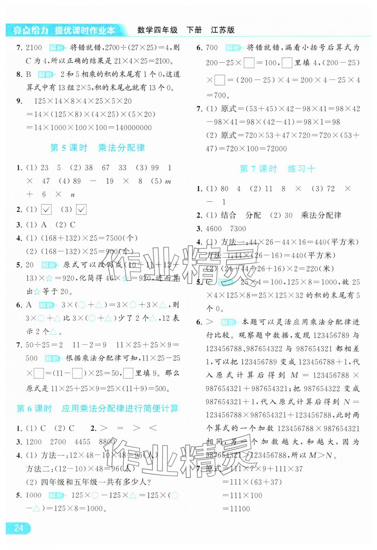 2024年亮点给力提优课时作业本四年级数学下册江苏版参考答案第24页
