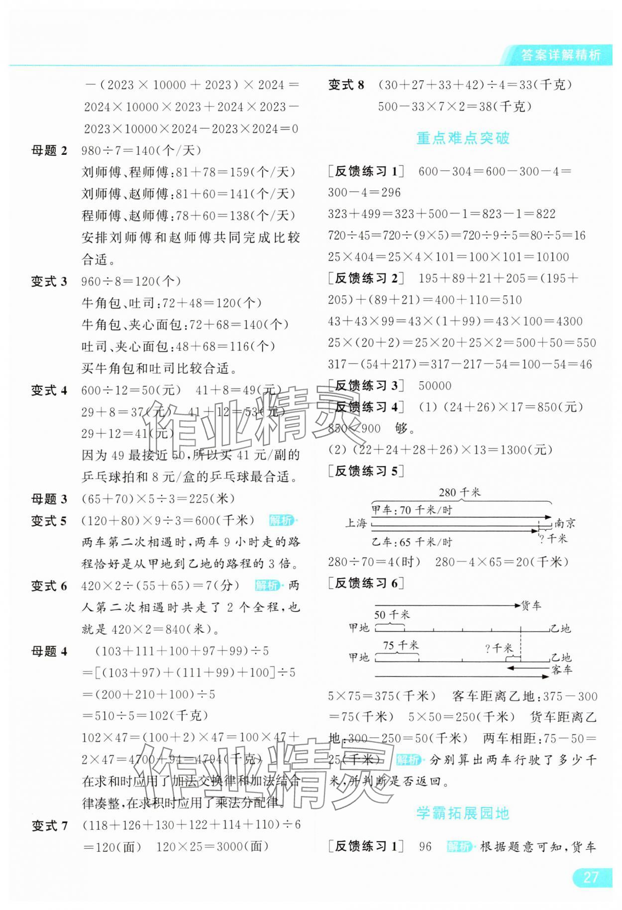 2024年亮点给力提优课时作业本四年级数学下册江苏版参考答案第27页