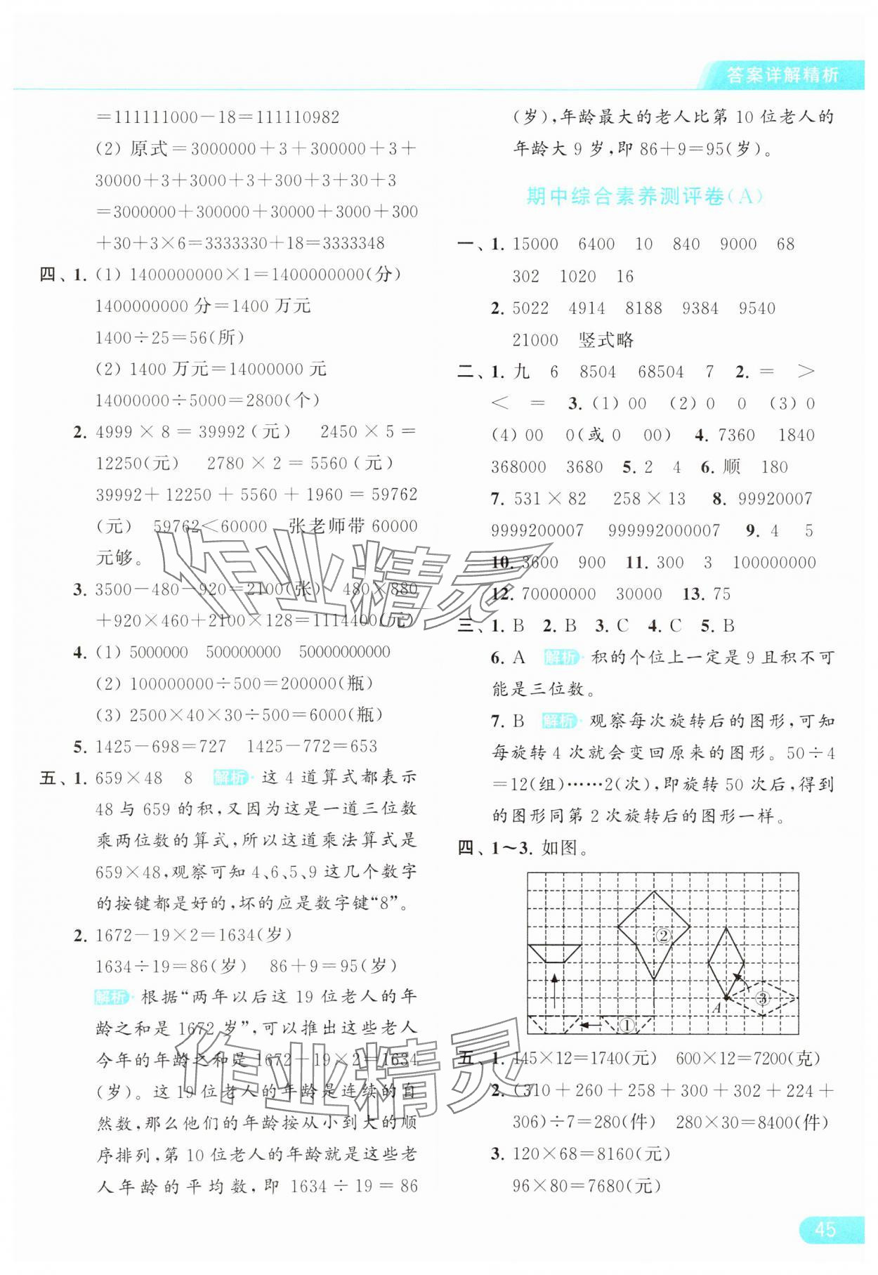2024年亮点给力提优课时作业本四年级数学下册江苏版参考答案第45页
