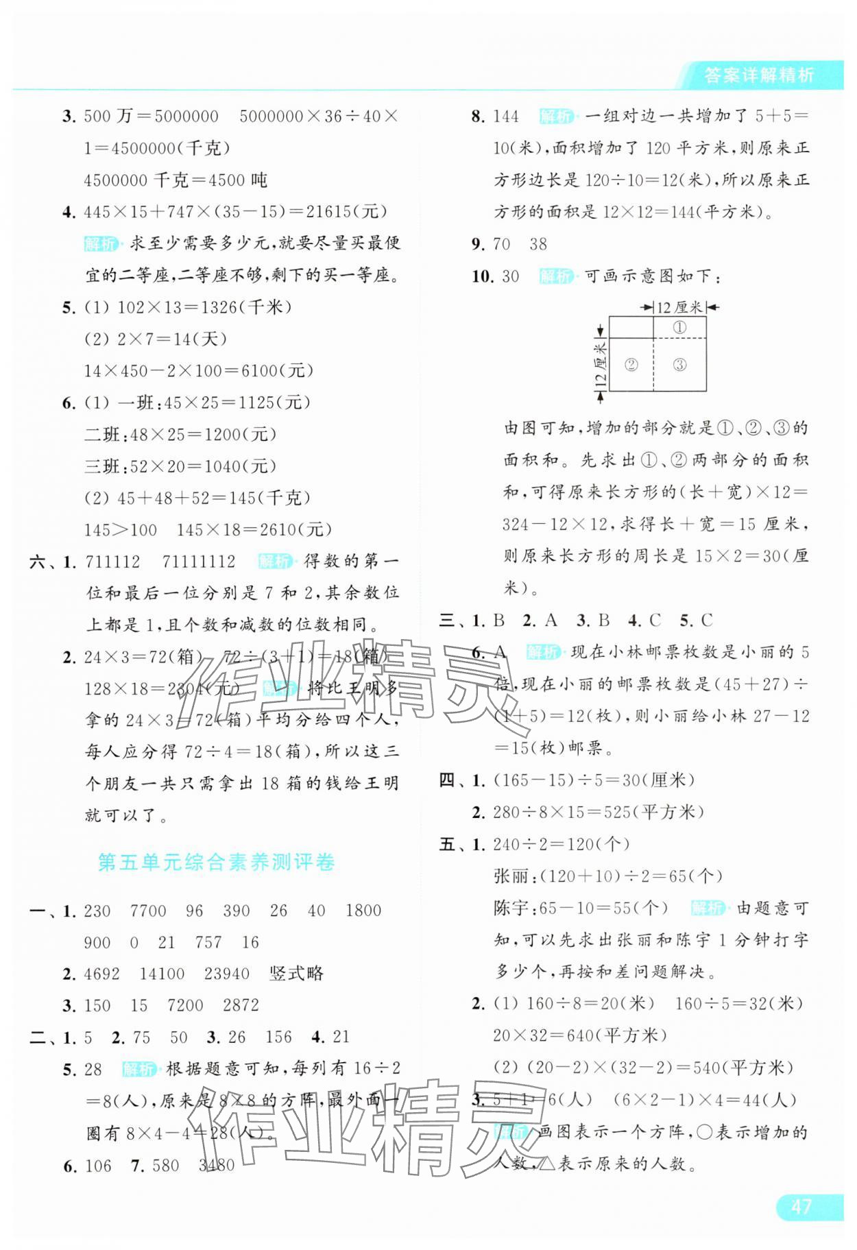 2024年亮点给力提优课时作业本四年级数学下册江苏版参考答案第47页