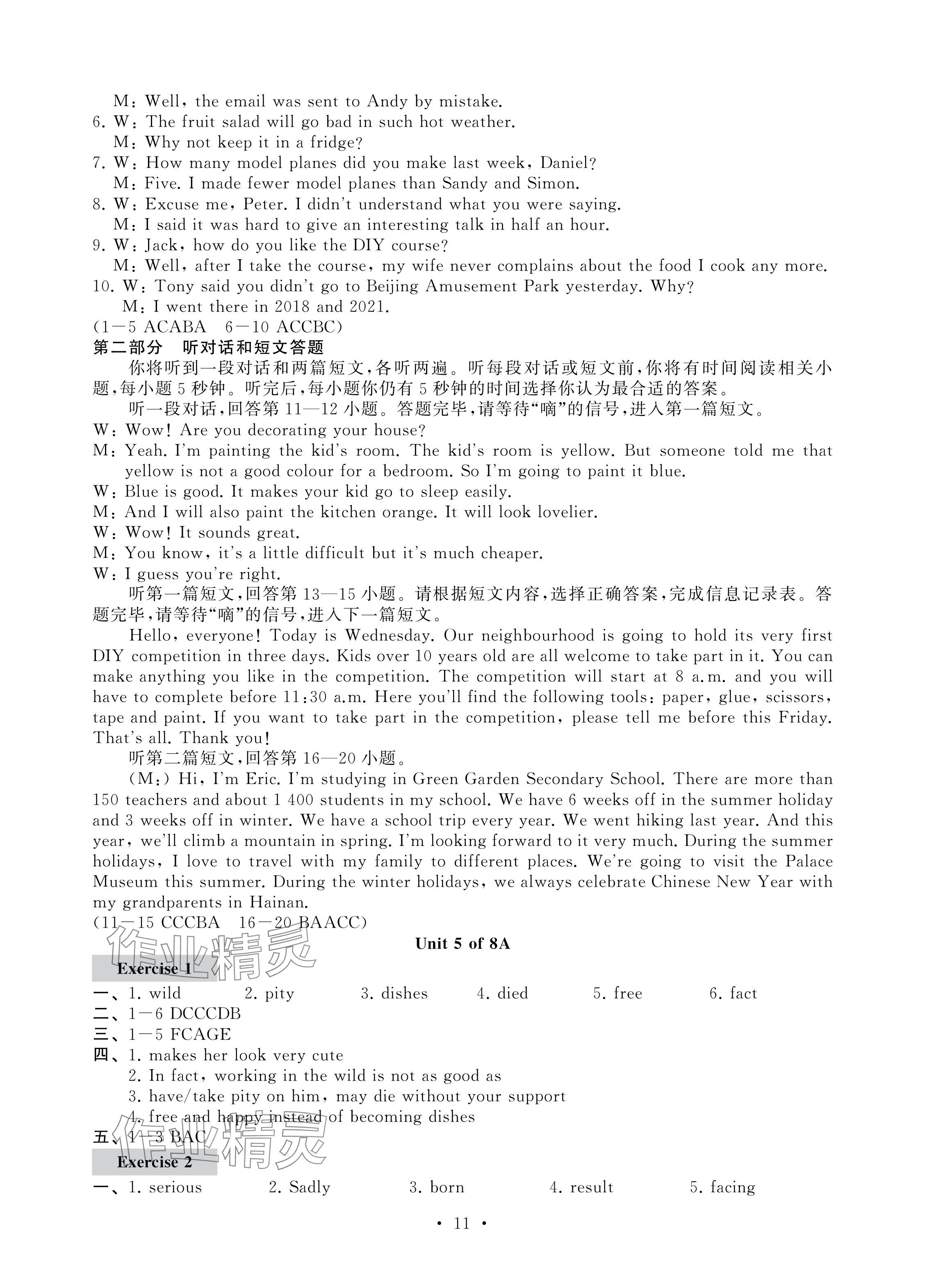 2024年综合素质随堂反馈八年级英语上册译林版无锡专版参考答案第11页