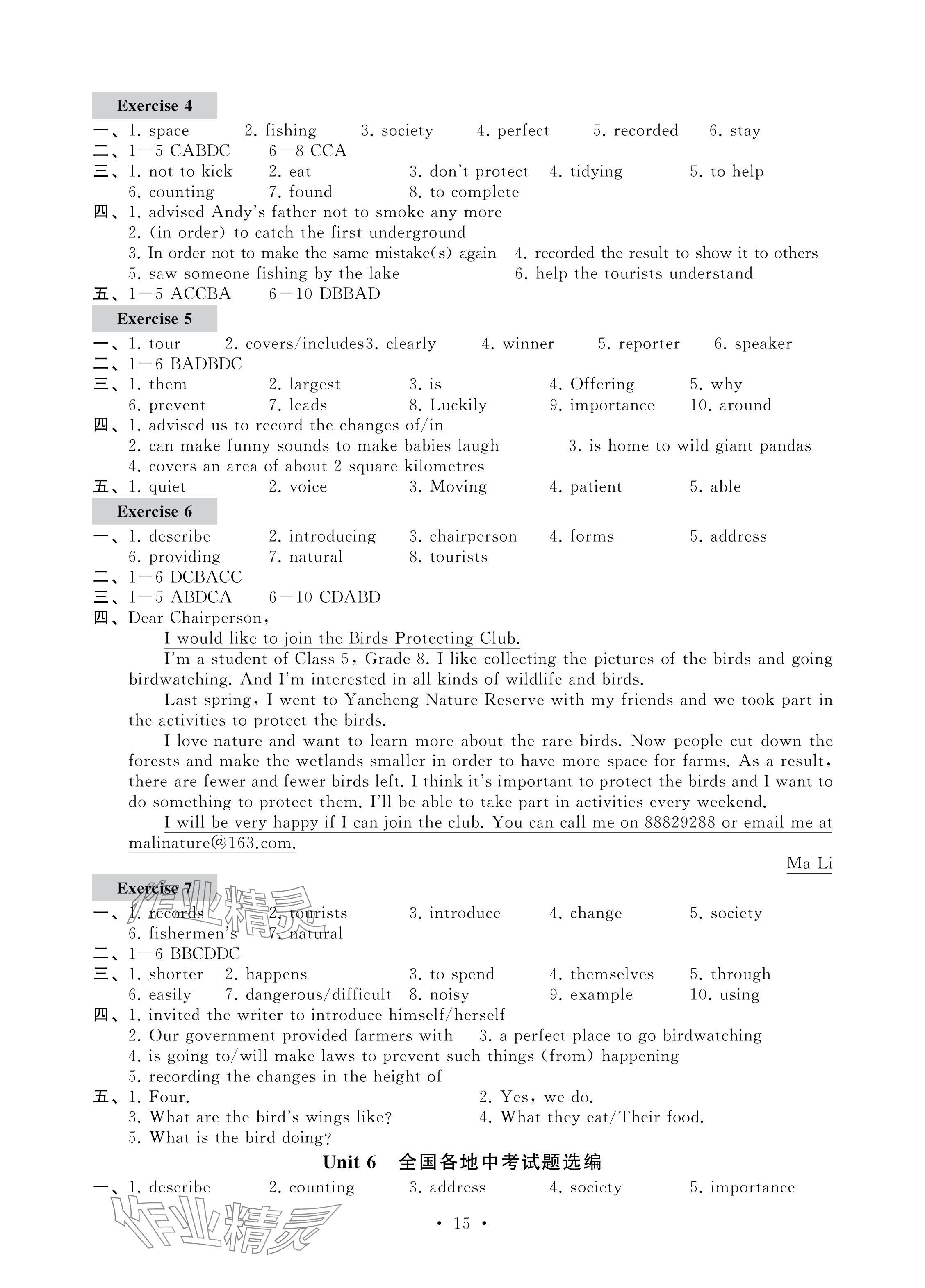 2024年综合素质随堂反馈八年级英语上册译林版无锡专版参考答案第15页
