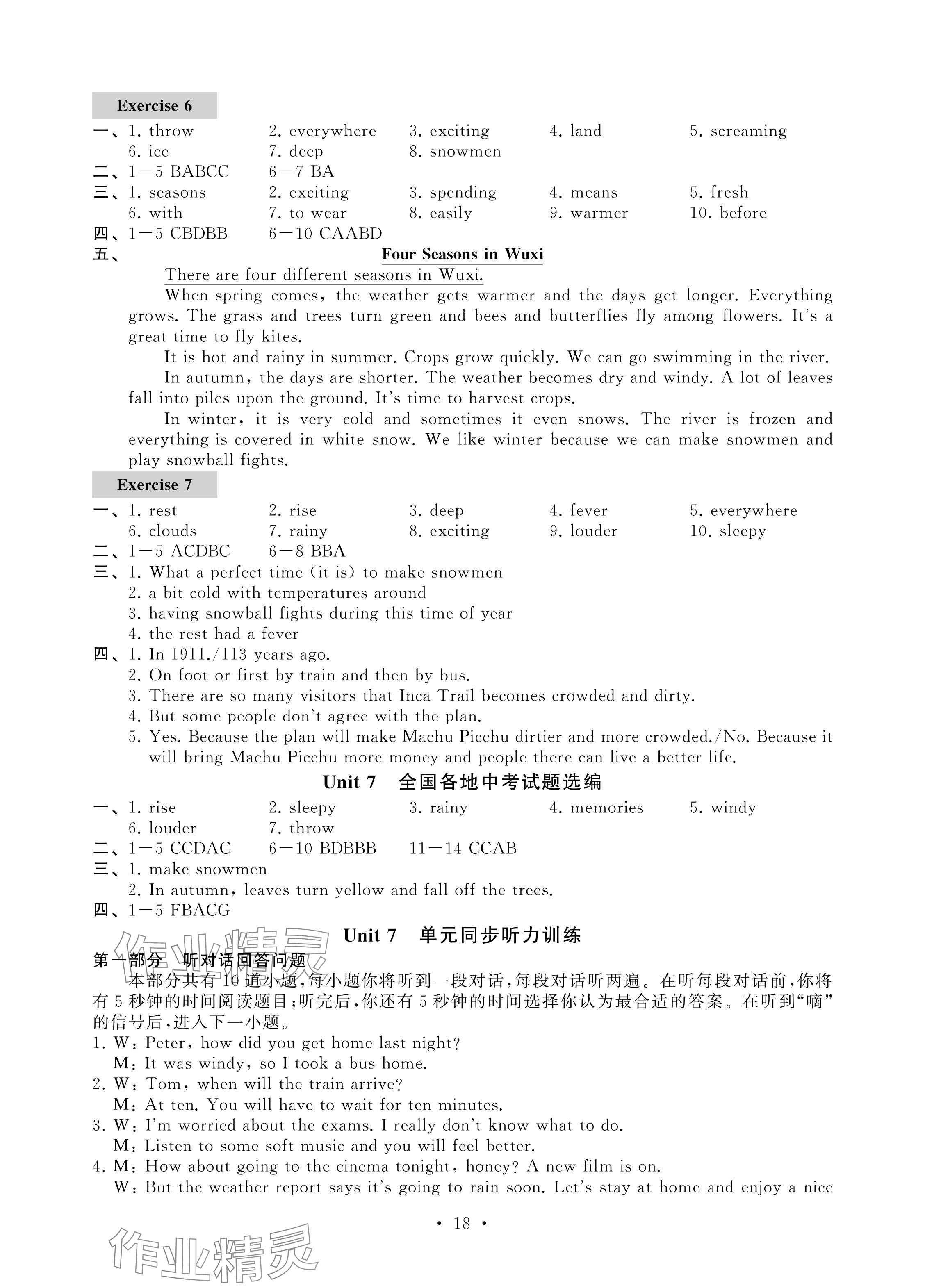 2024年综合素质随堂反馈八年级英语上册译林版无锡专版参考答案第18页