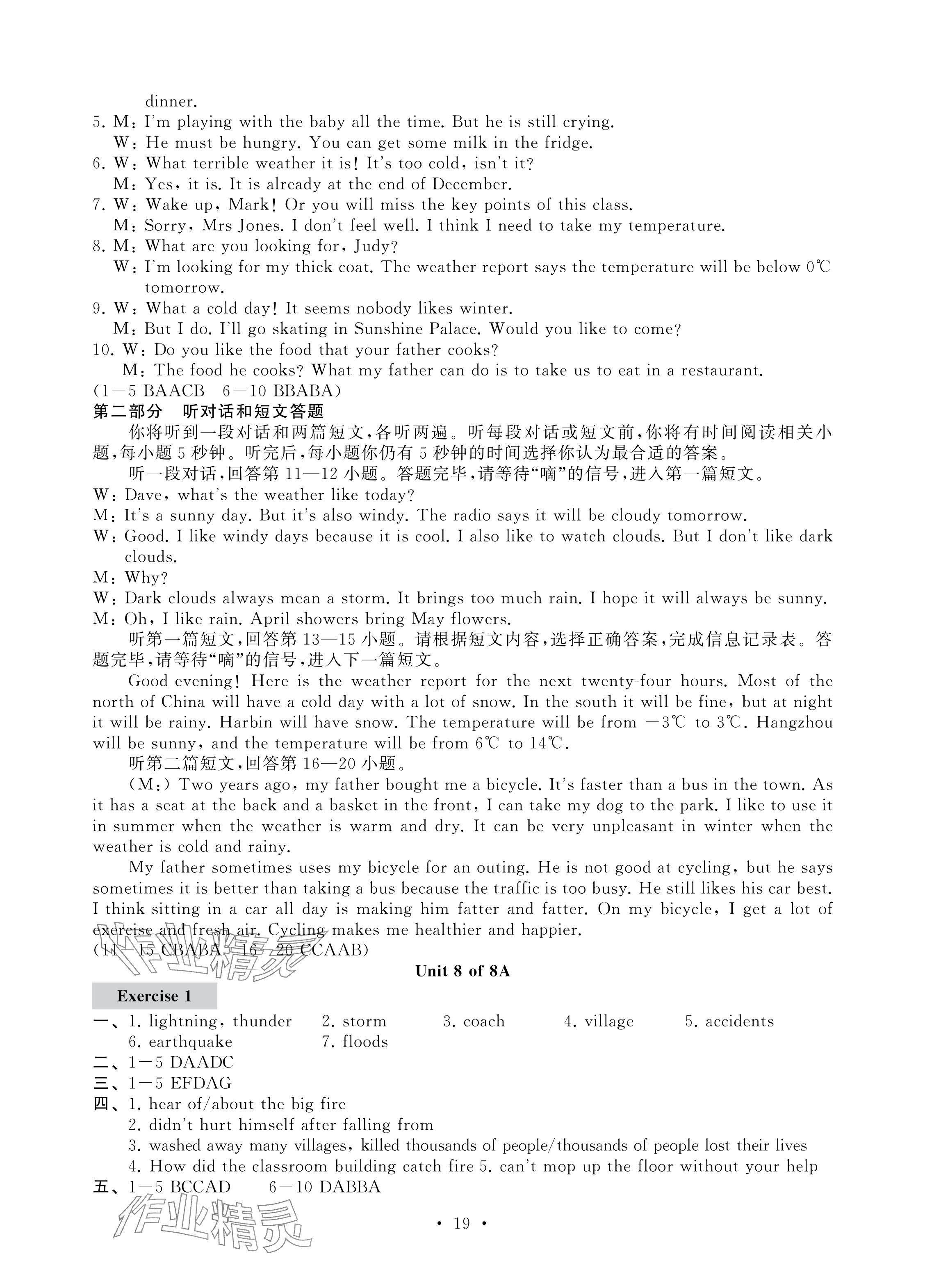 2024年综合素质随堂反馈八年级英语上册译林版无锡专版参考答案第19页