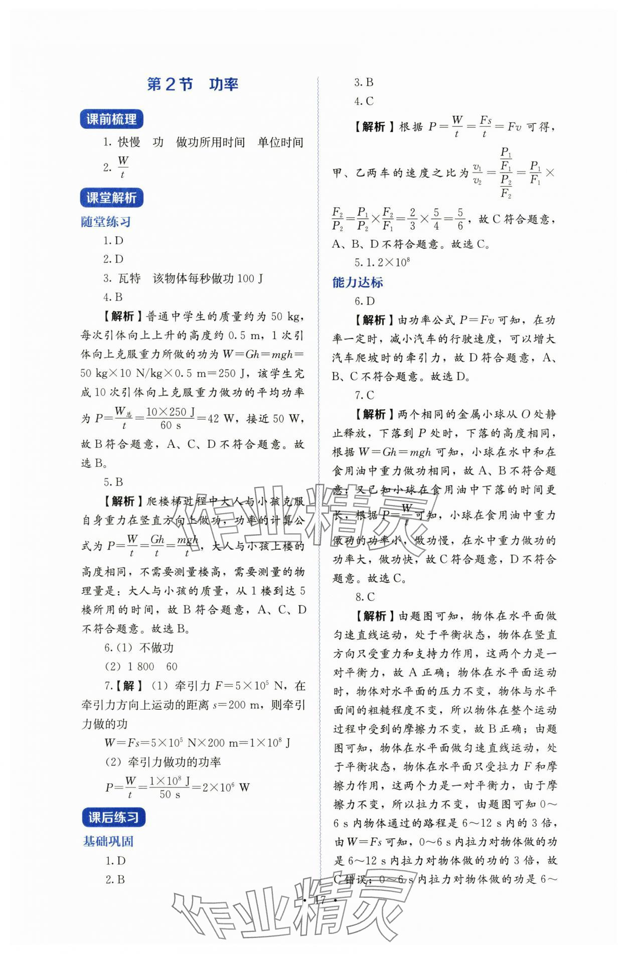 2025年人教金学典同步解析与测评八年级物理下册人教版第17页