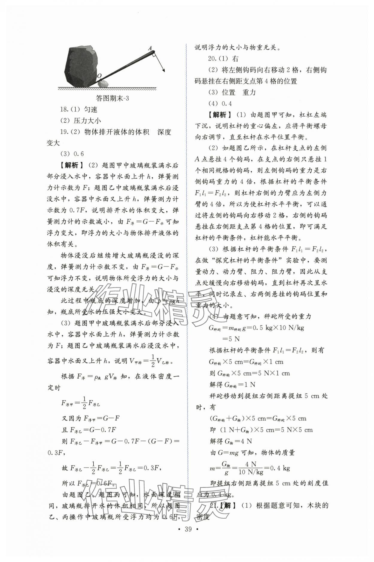 2025年人教金学典同步解析与测评八年级物理下册人教版第39页