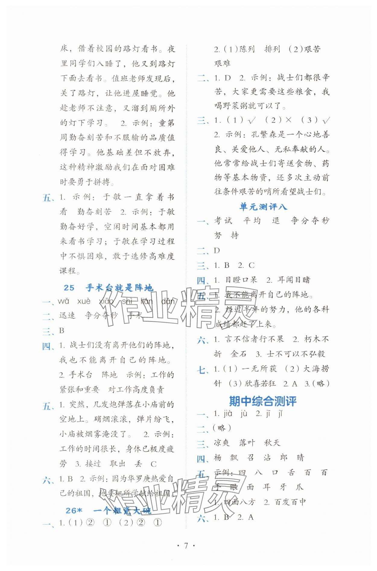 2025年人教金学典同步解析与测评三年级语文上册人教版第7页