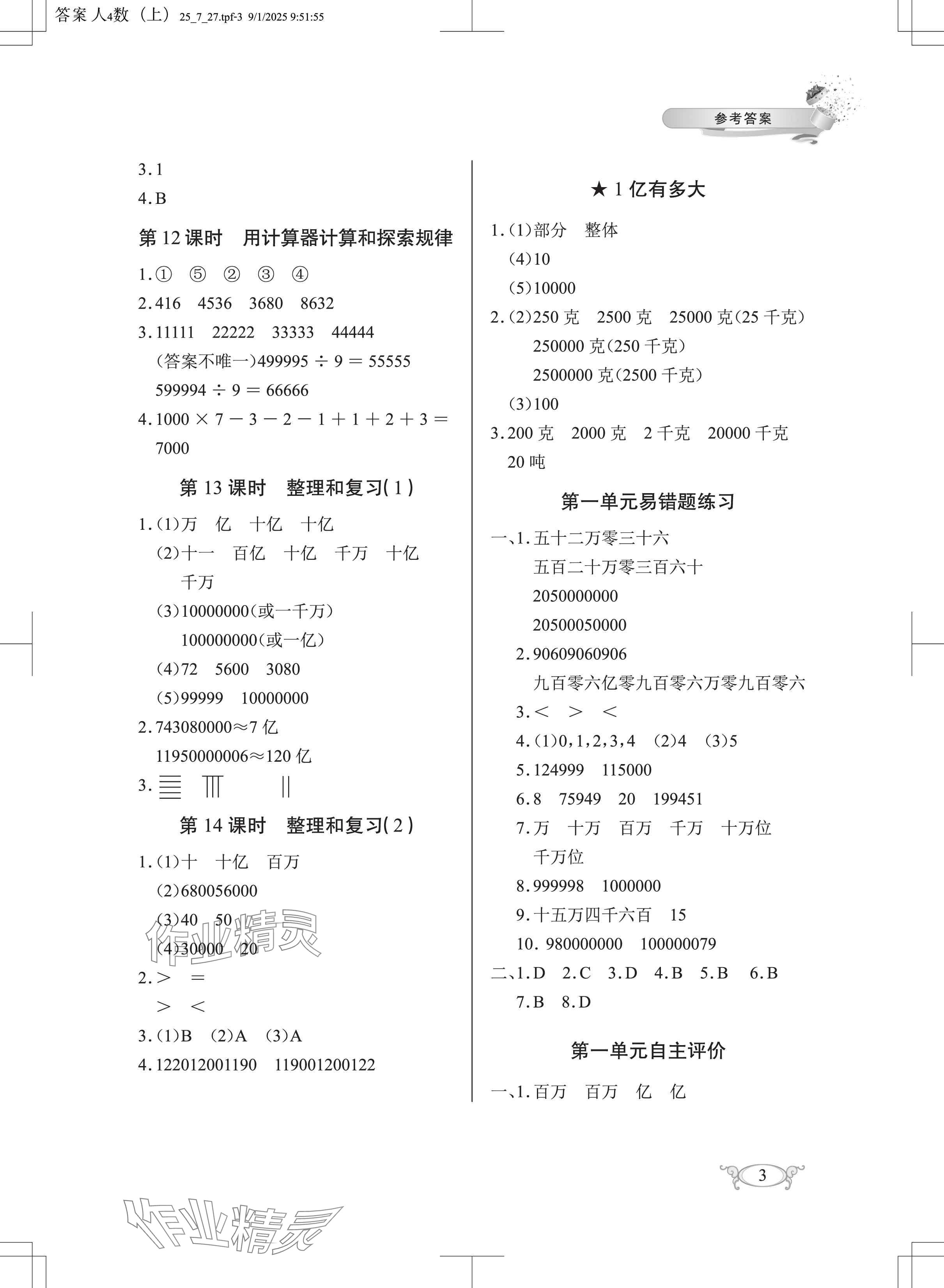 2025年长江作业本同步练习册四年级数学上册人教版参考答案第3页