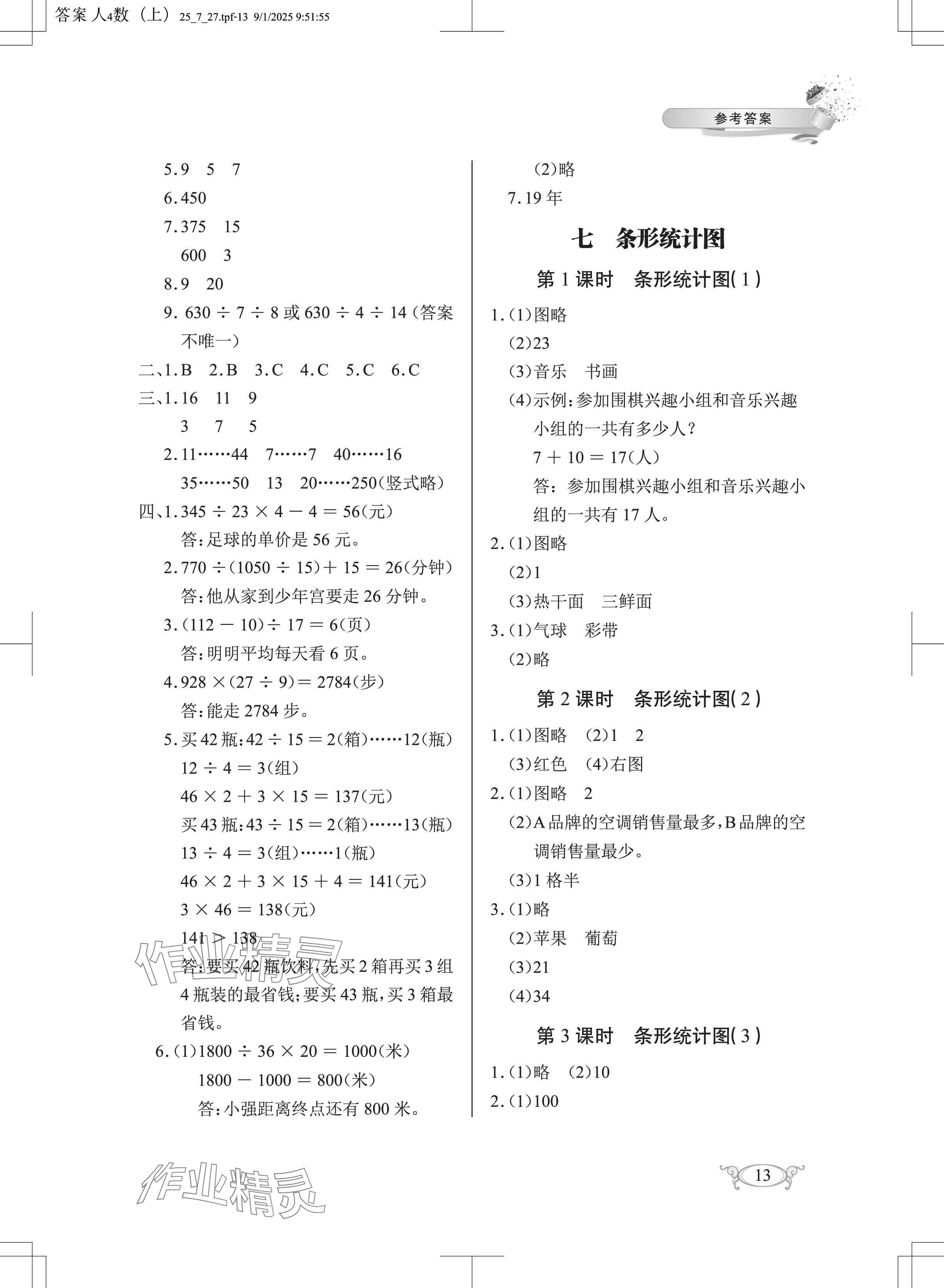 2025年长江作业本同步练习册四年级数学上册人教版参考答案第13页