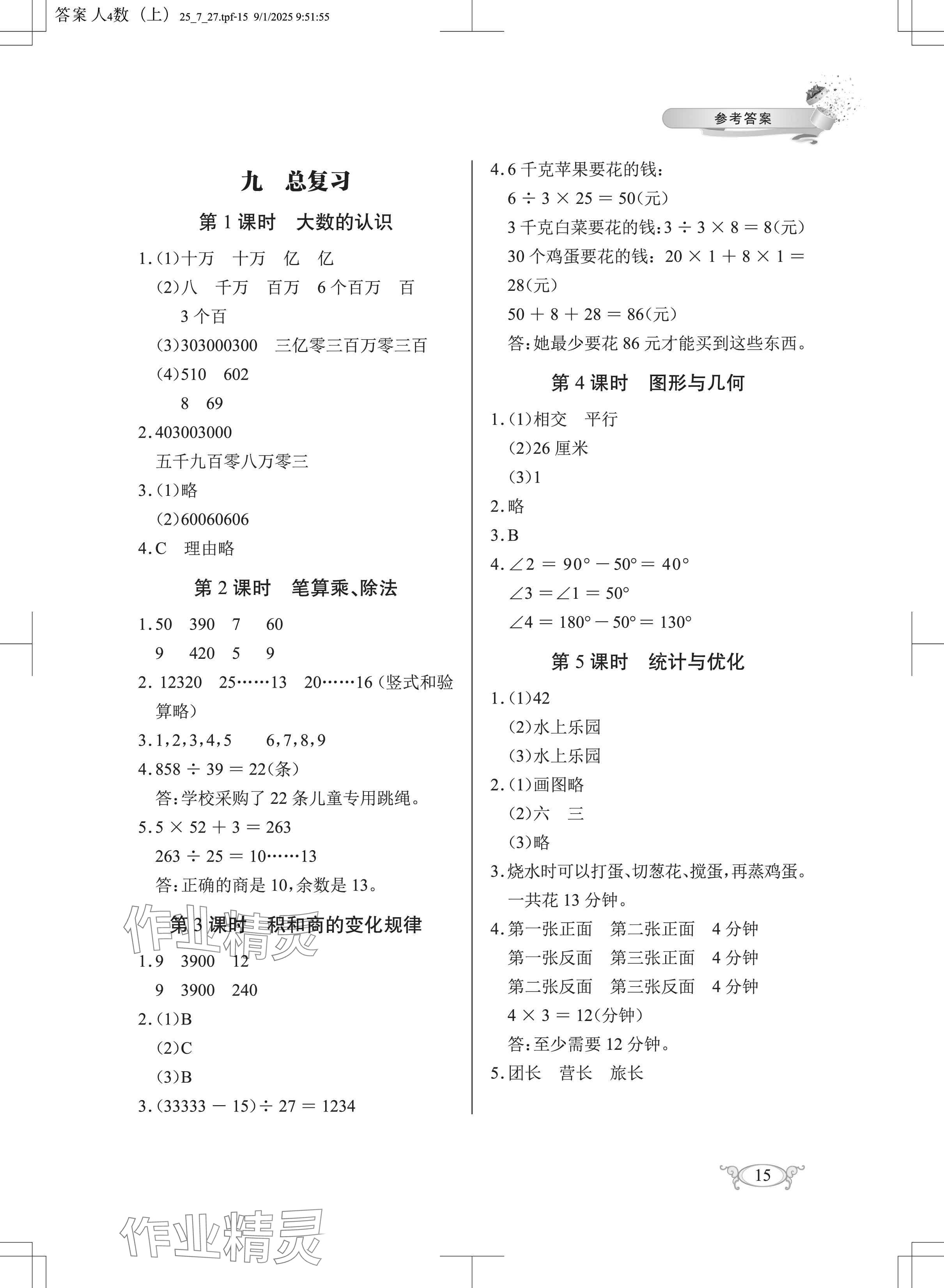 2025年长江作业本同步练习册四年级数学上册人教版参考答案第15页