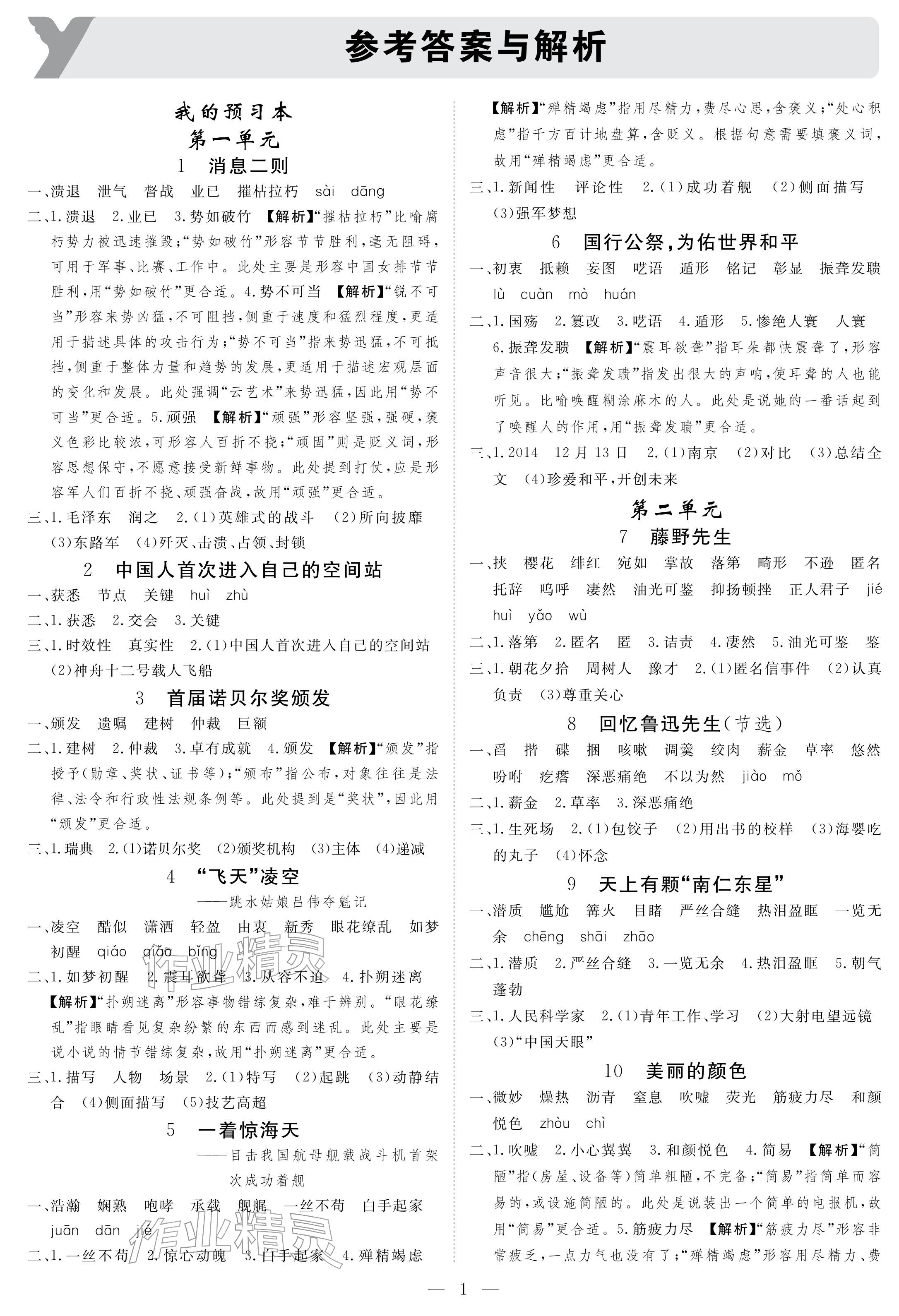 2025年优翼学练优八年级语文上册人教版参考答案第25页