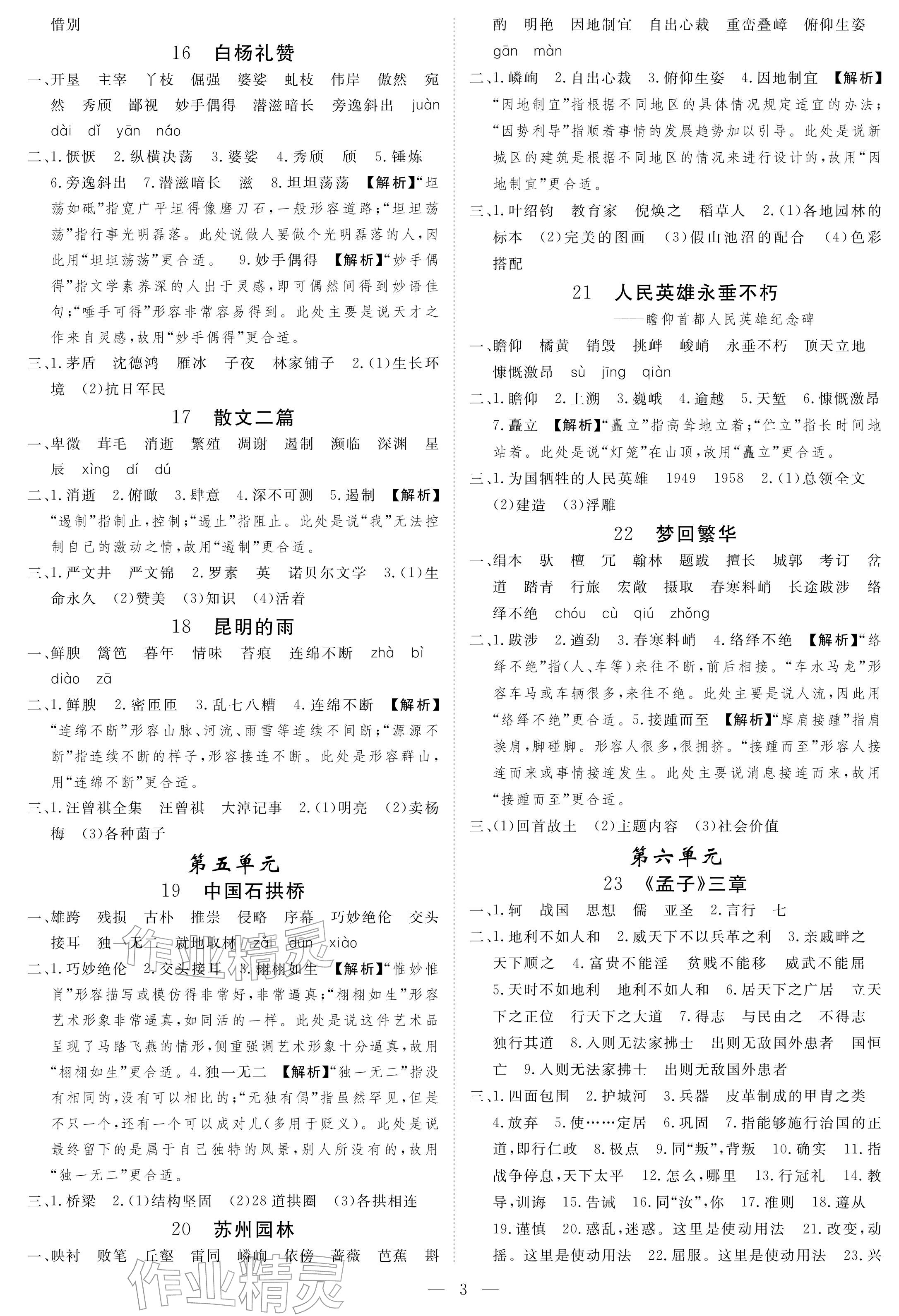 2025年优翼学练优八年级语文上册人教版参考答案第27页