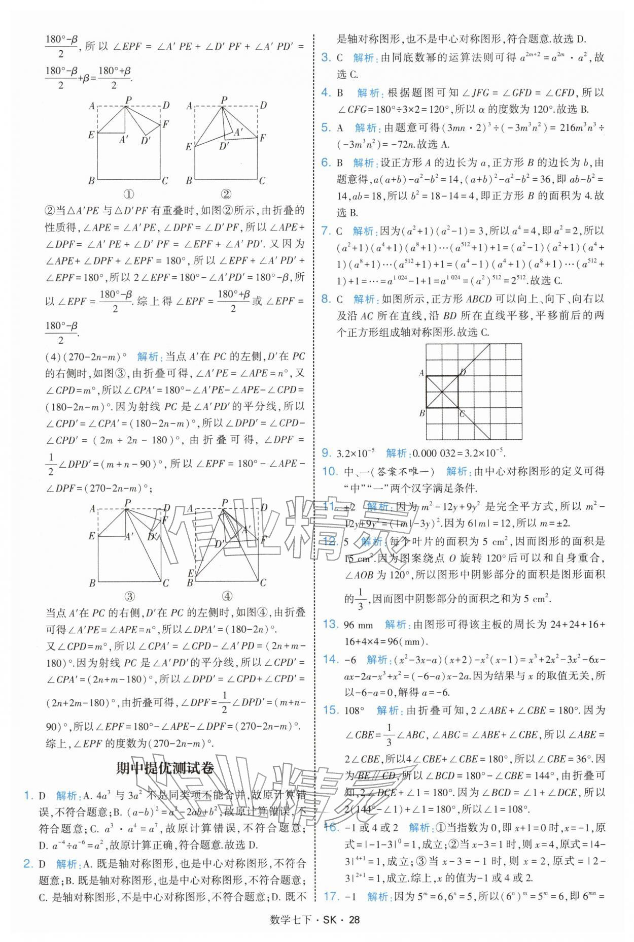 2026年学霸题中题七年级数学下册苏科版参考答案第28页