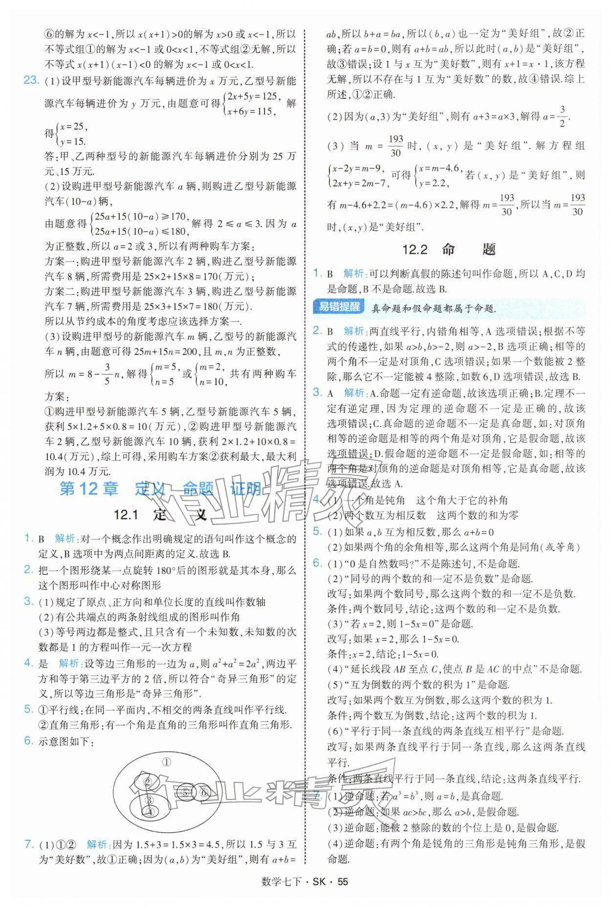 2026年学霸题中题七年级数学下册苏科版参考答案第55页