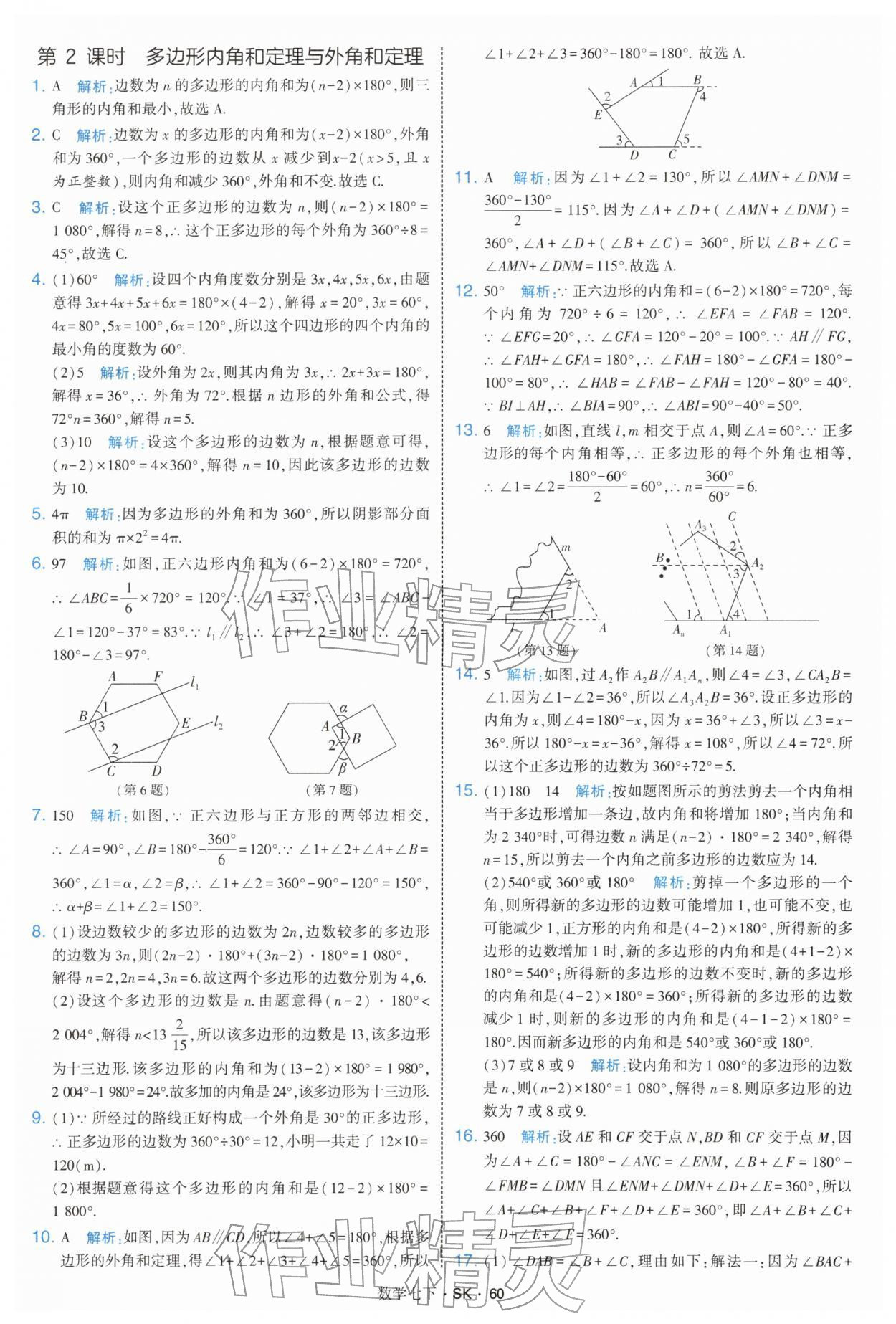 2026年学霸题中题七年级数学下册苏科版参考答案第60页