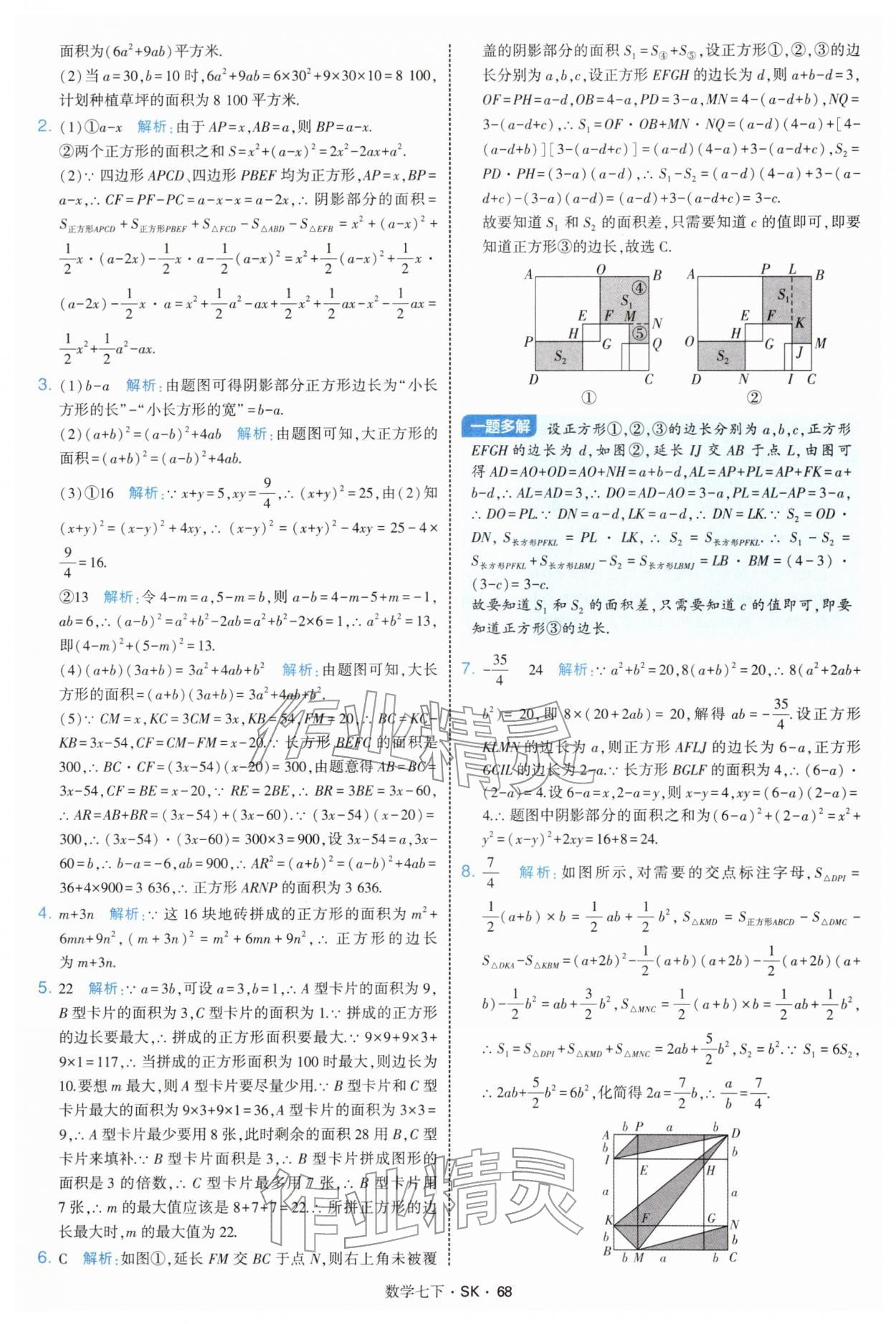 2026年学霸题中题七年级数学下册苏科版参考答案第68页