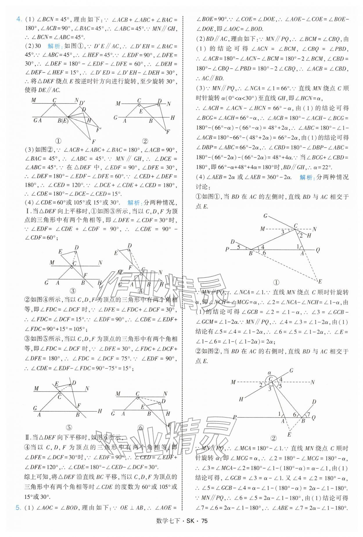 2026年学霸题中题七年级数学下册苏科版参考答案第75页