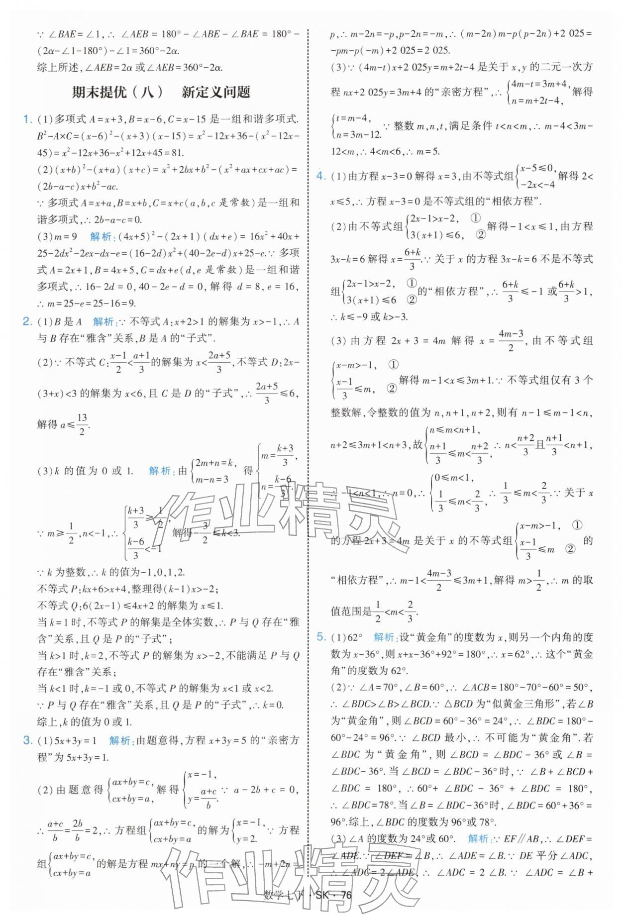 2026年学霸题中题七年级数学下册苏科版参考答案第76页