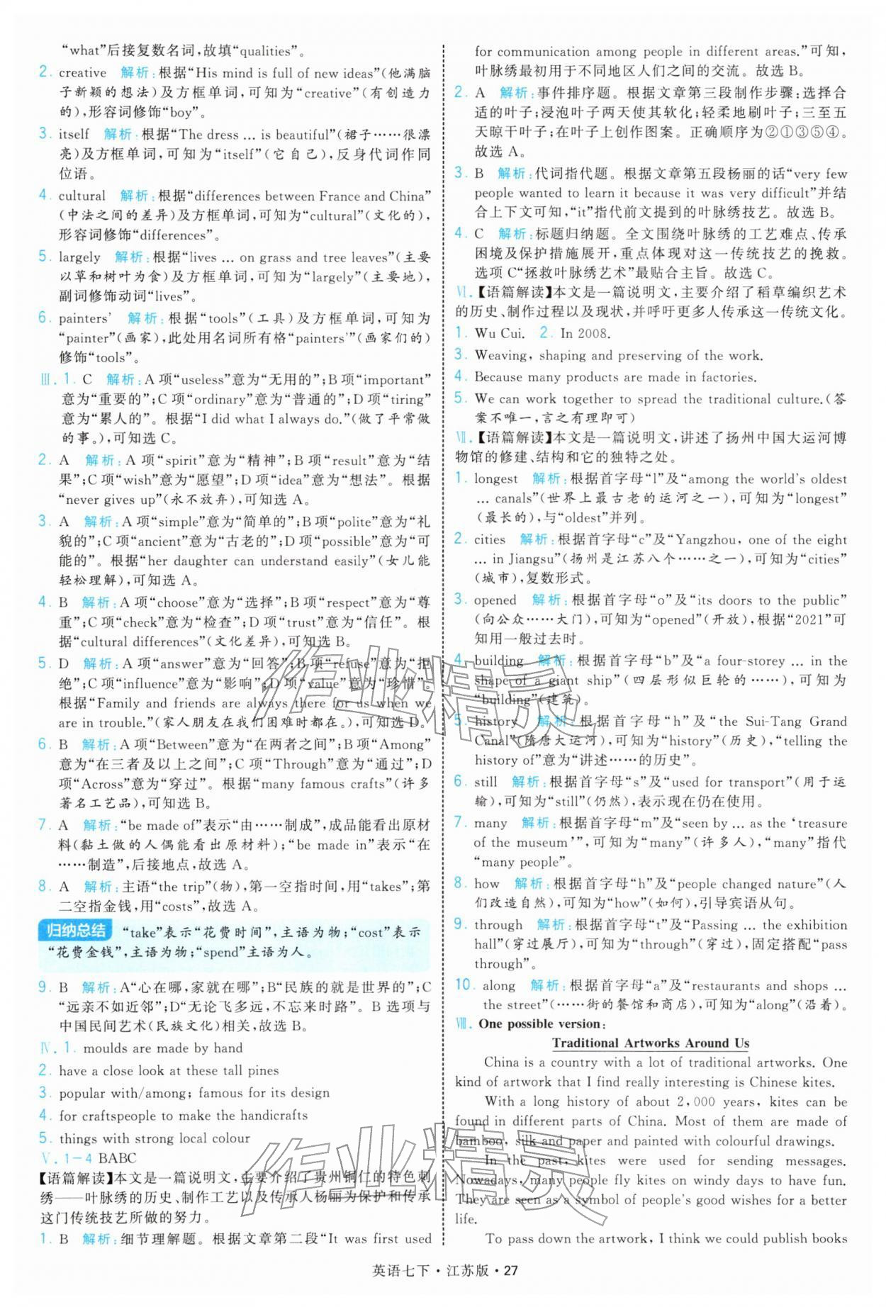 2026年学霸题中题七年级英语下册译林版参考答案第27页