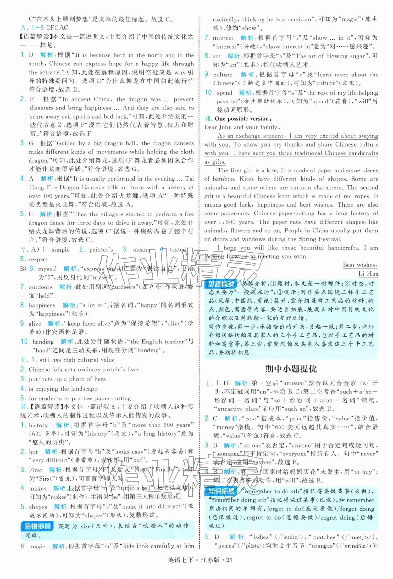 2026年学霸题中题七年级英语下册译林版参考答案第31页