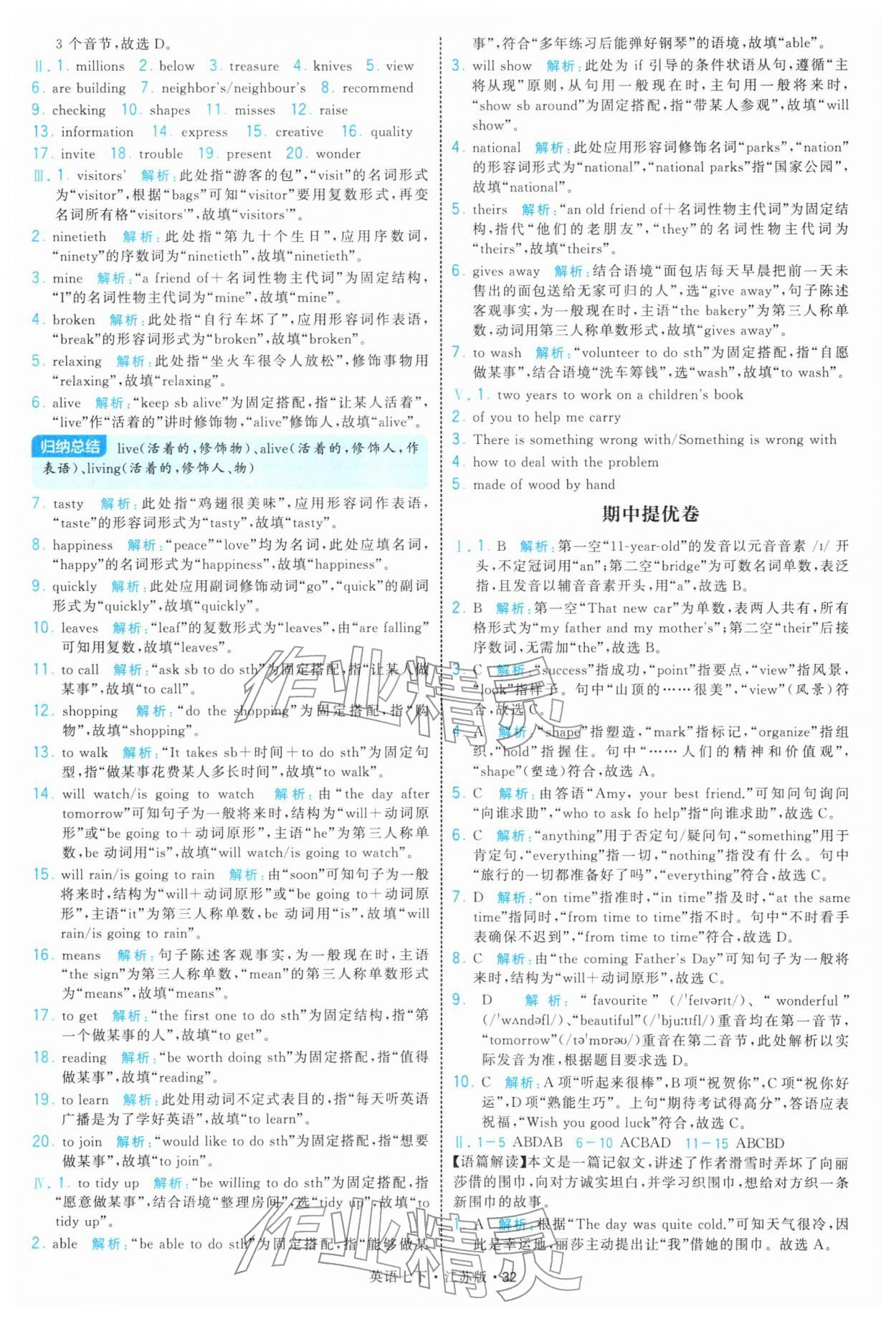2026年学霸题中题七年级英语下册译林版参考答案第32页