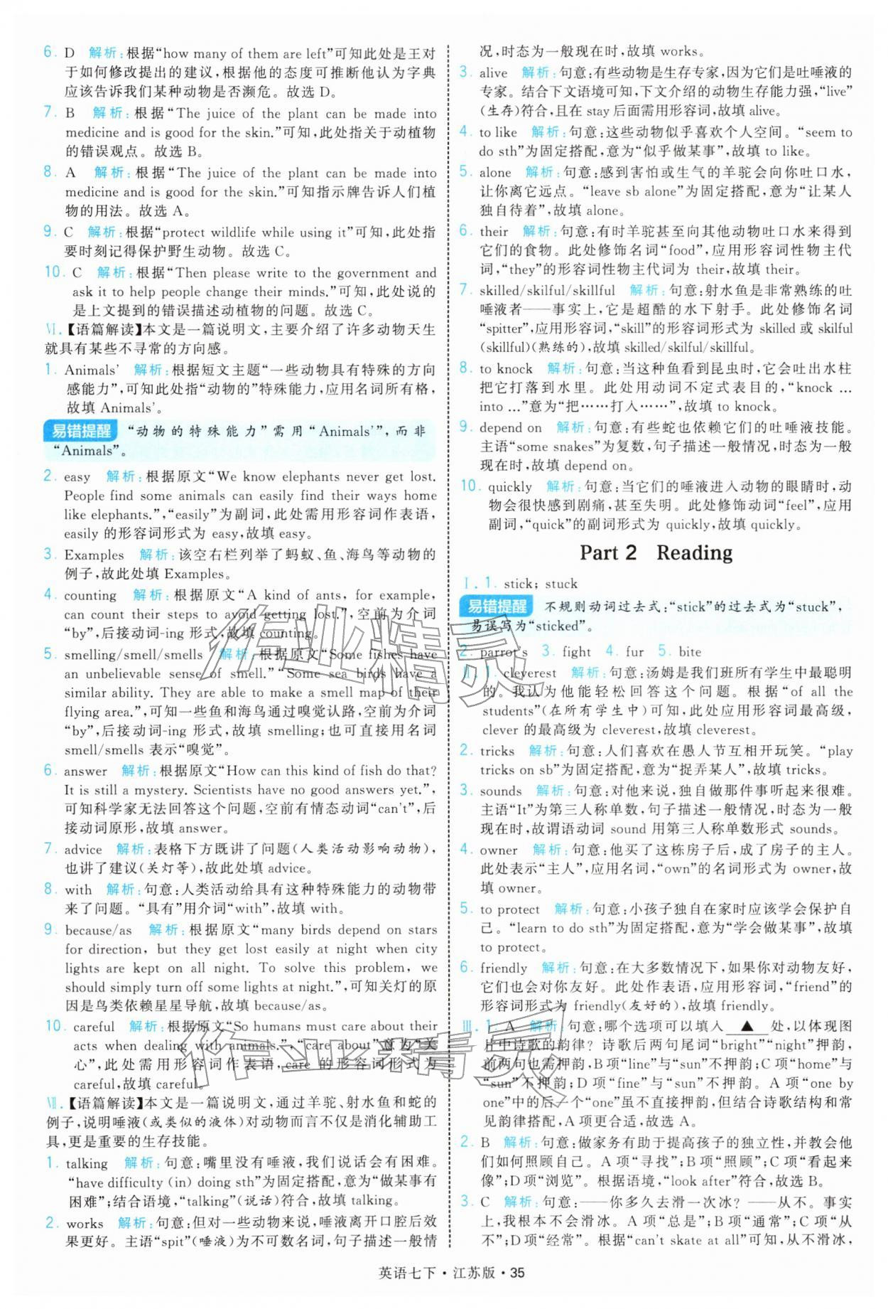 2026年学霸题中题七年级英语下册译林版参考答案第35页