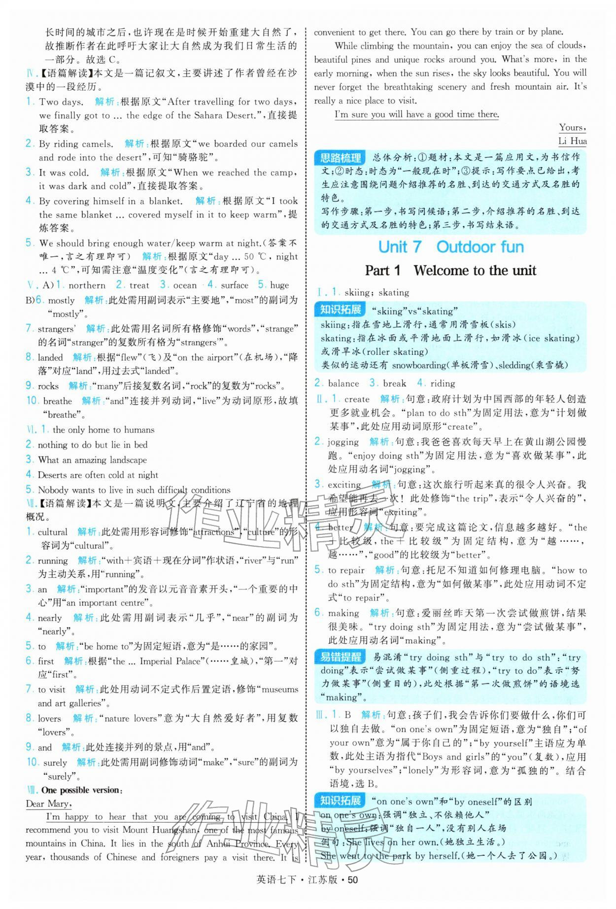 2026年学霸题中题七年级英语下册译林版参考答案第50页