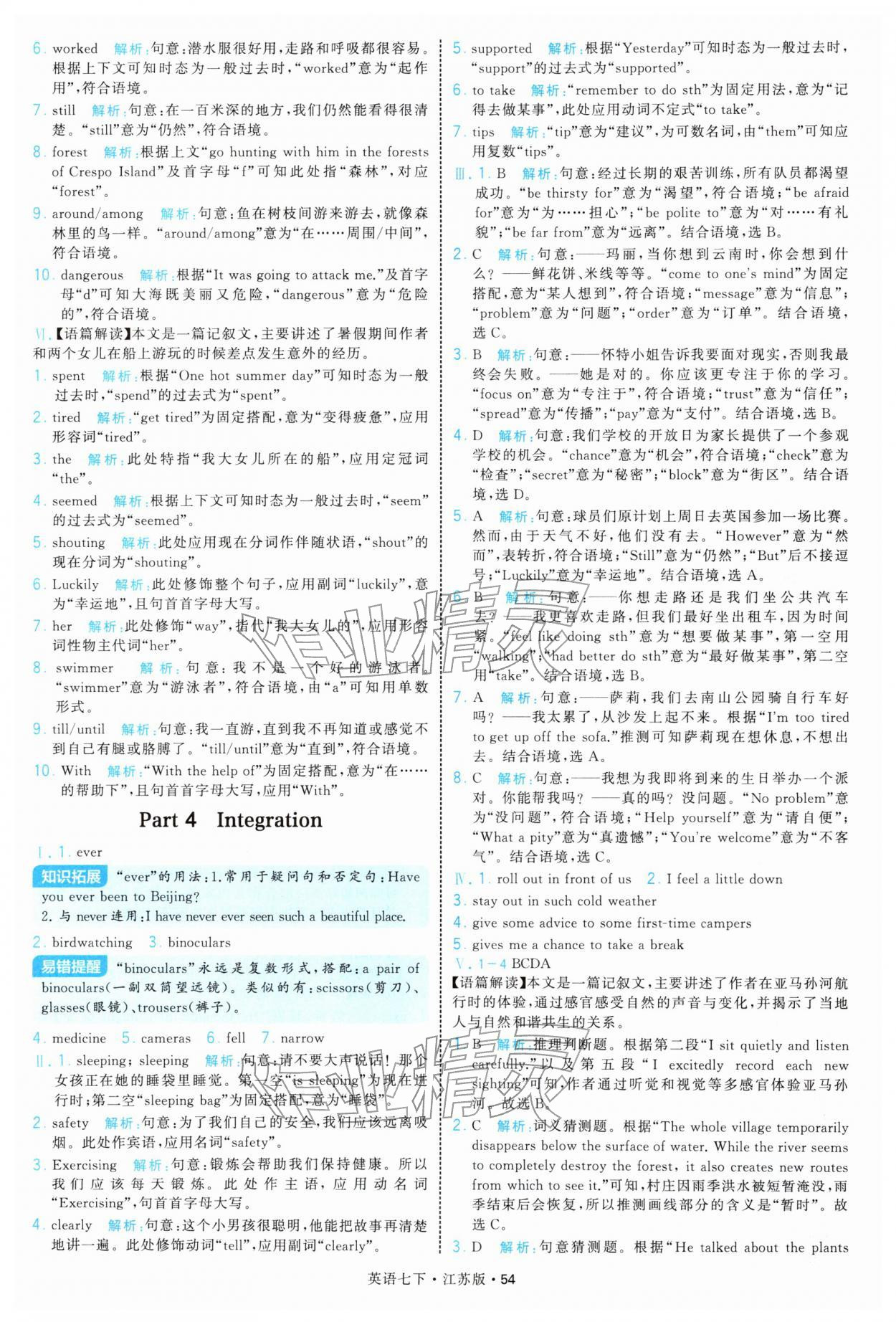 2026年学霸题中题七年级英语下册译林版参考答案第54页