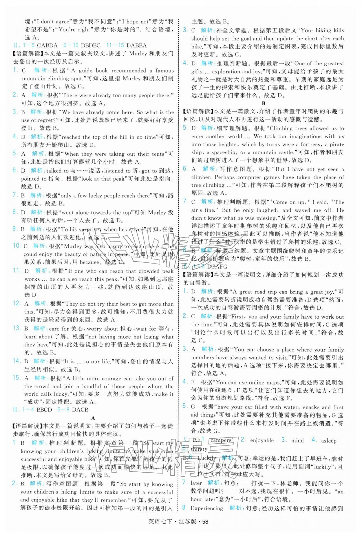 2026年学霸题中题七年级英语下册译林版参考答案第58页
