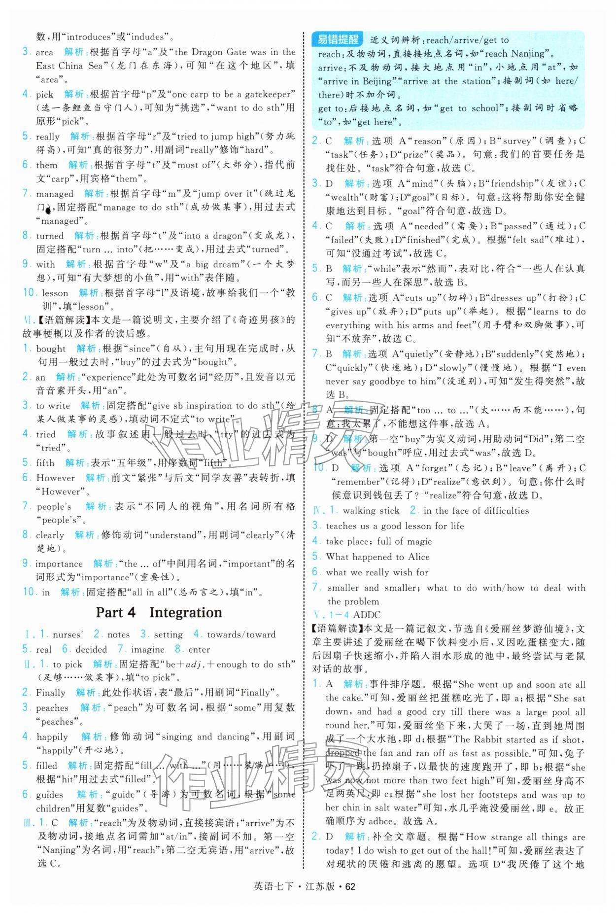 2026年学霸题中题七年级英语下册译林版参考答案第62页