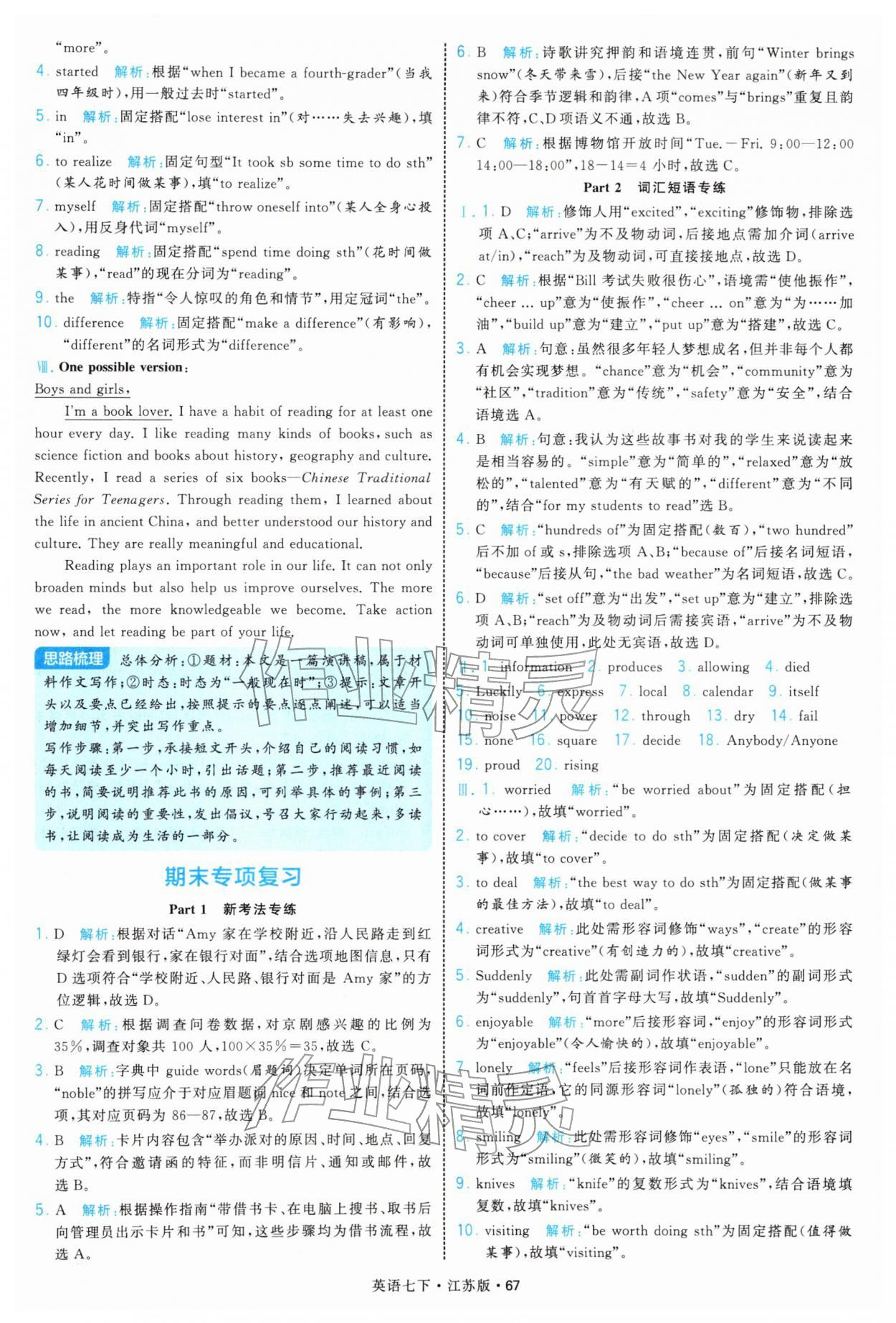 2026年学霸题中题七年级英语下册译林版参考答案第67页