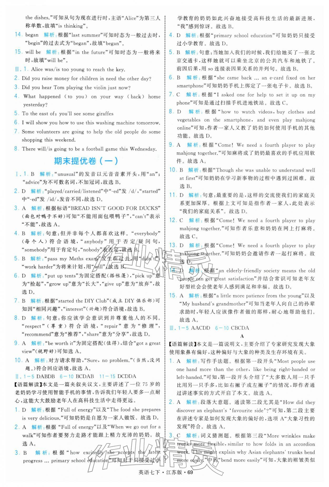 2026年学霸题中题七年级英语下册译林版参考答案第69页