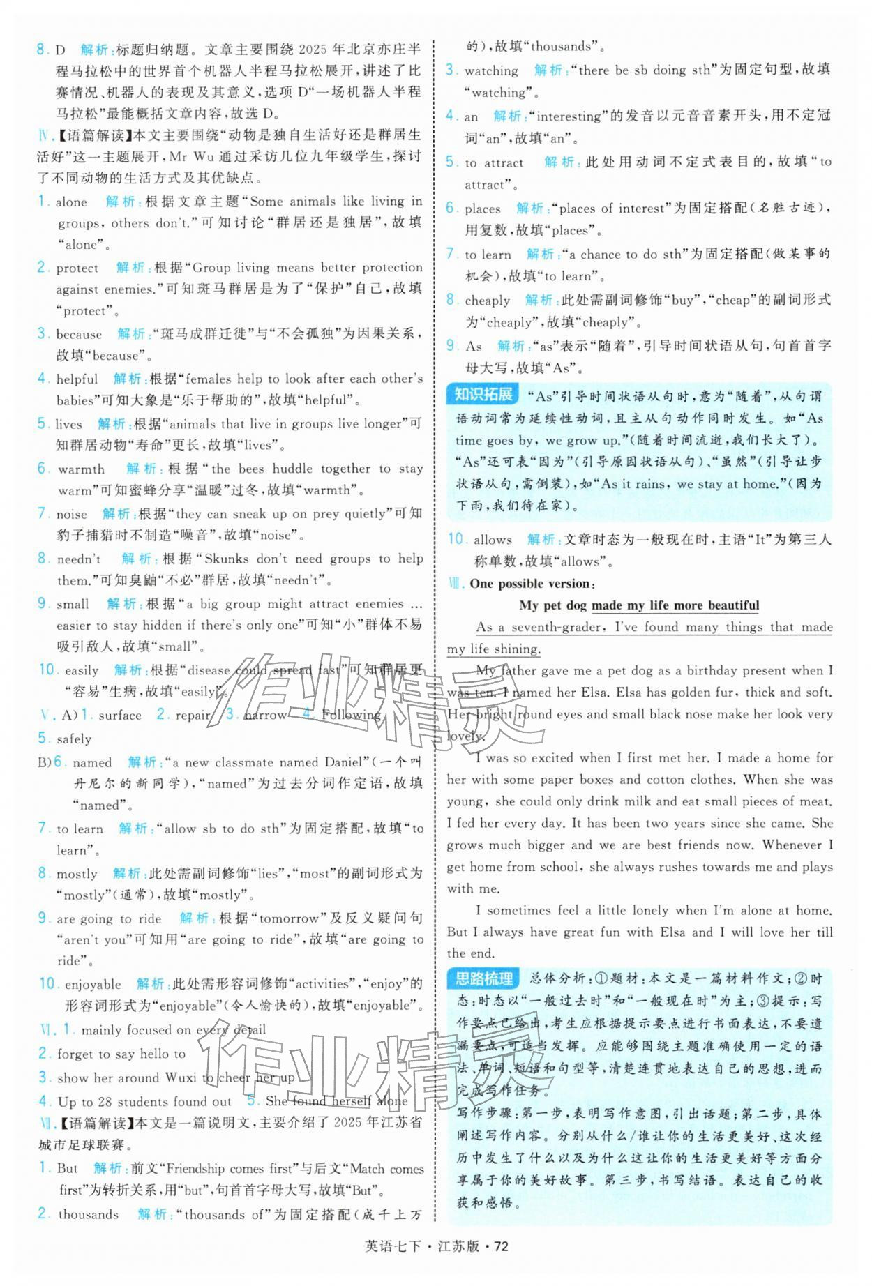 2026年学霸题中题七年级英语下册译林版参考答案第72页