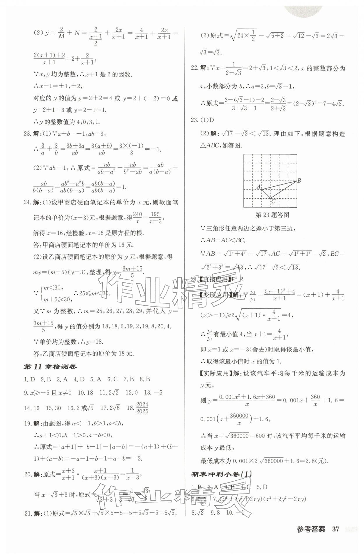 2026年启东中学作业本八年级数学下册苏科版宿迁专版第37页