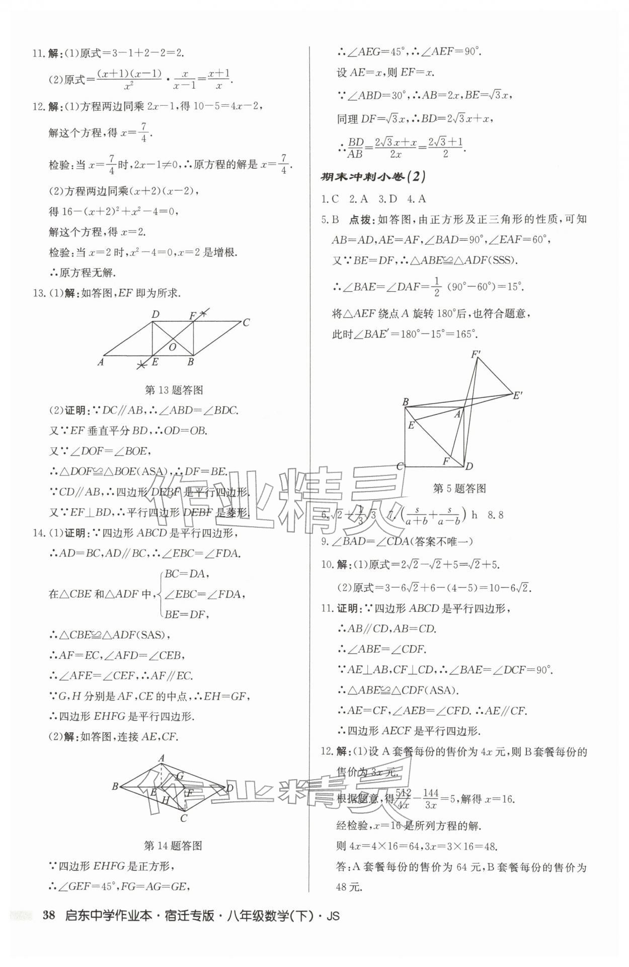 2026年启东中学作业本八年级数学下册苏科版宿迁专版第38页