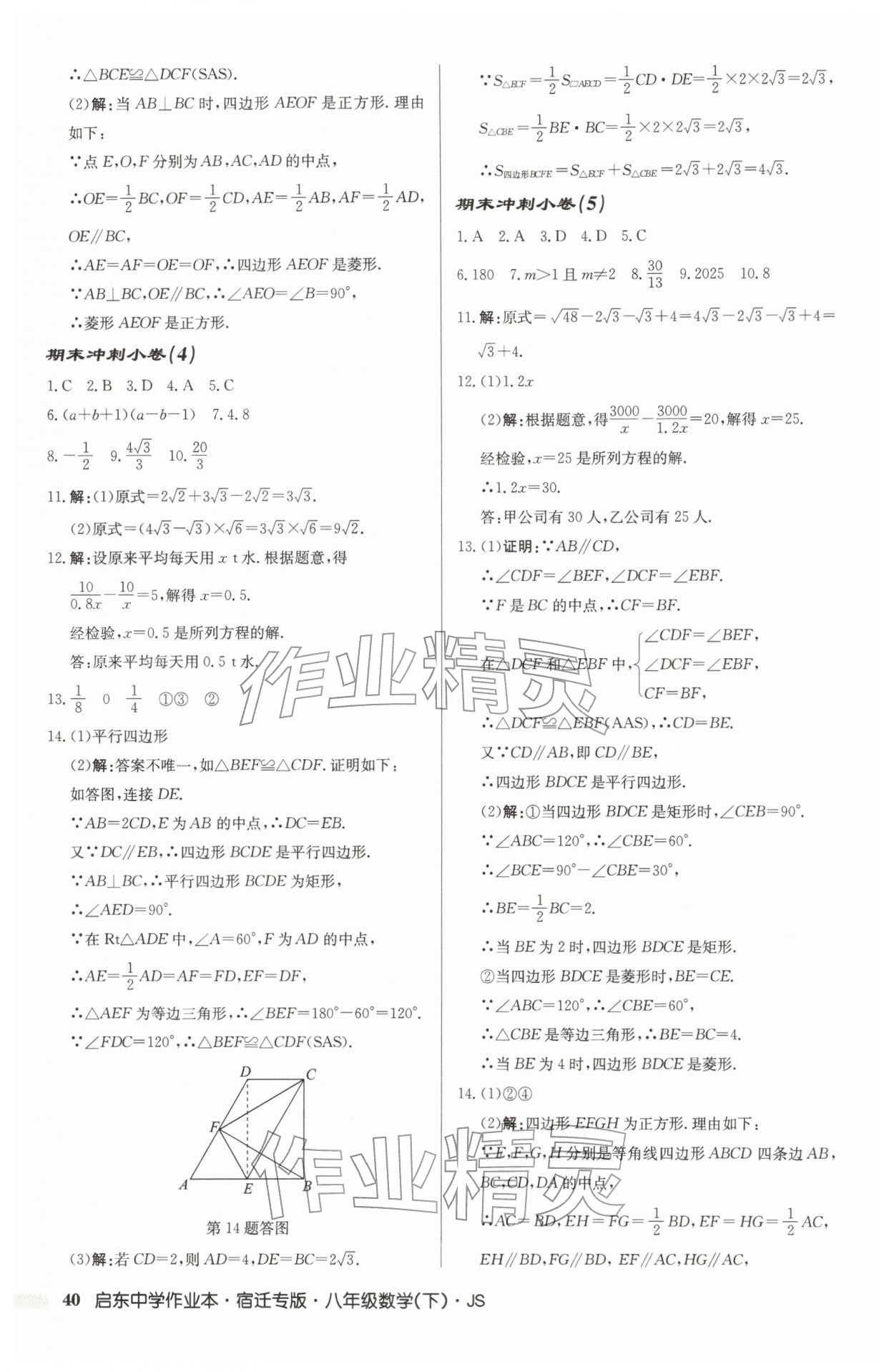 2026年启东中学作业本八年级数学下册苏科版宿迁专版第40页