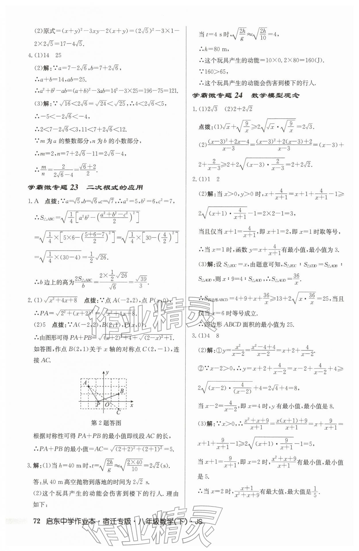 2026年启东中学作业本八年级数学下册苏科版宿迁专版第72页