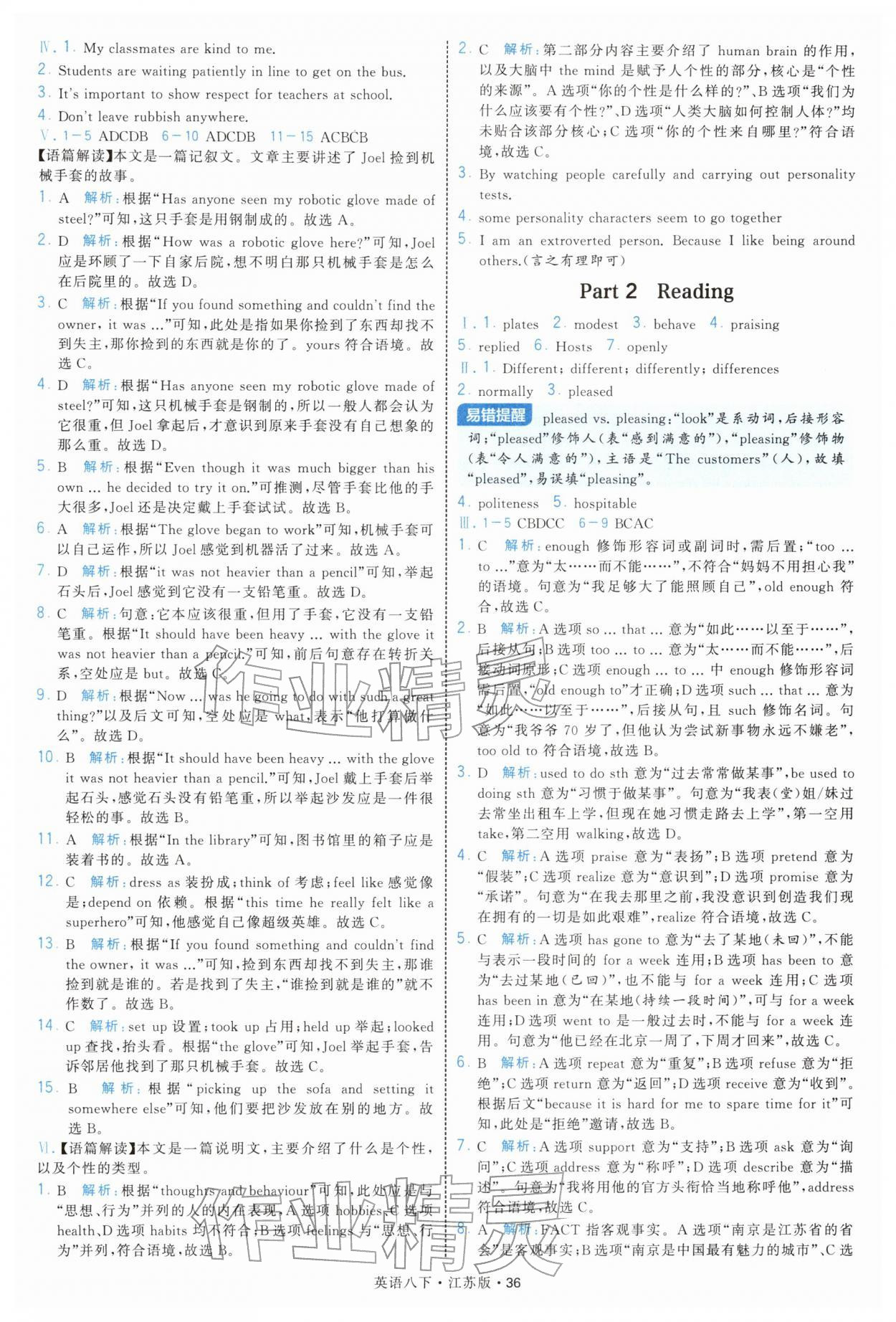2026年学霸题中题八年级英语下册译林版第36页
