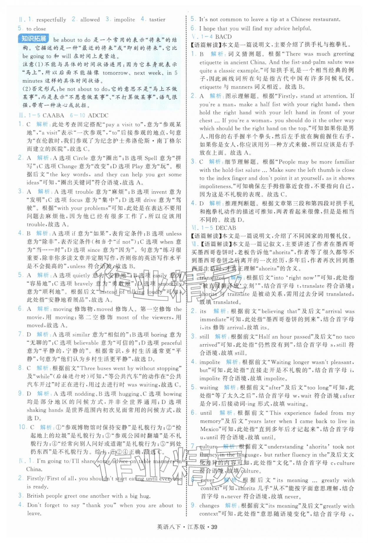 2026年学霸题中题八年级英语下册译林版第39页